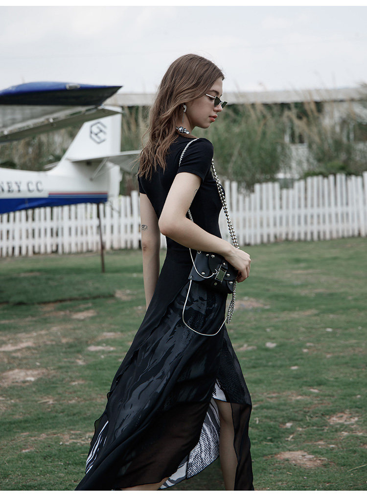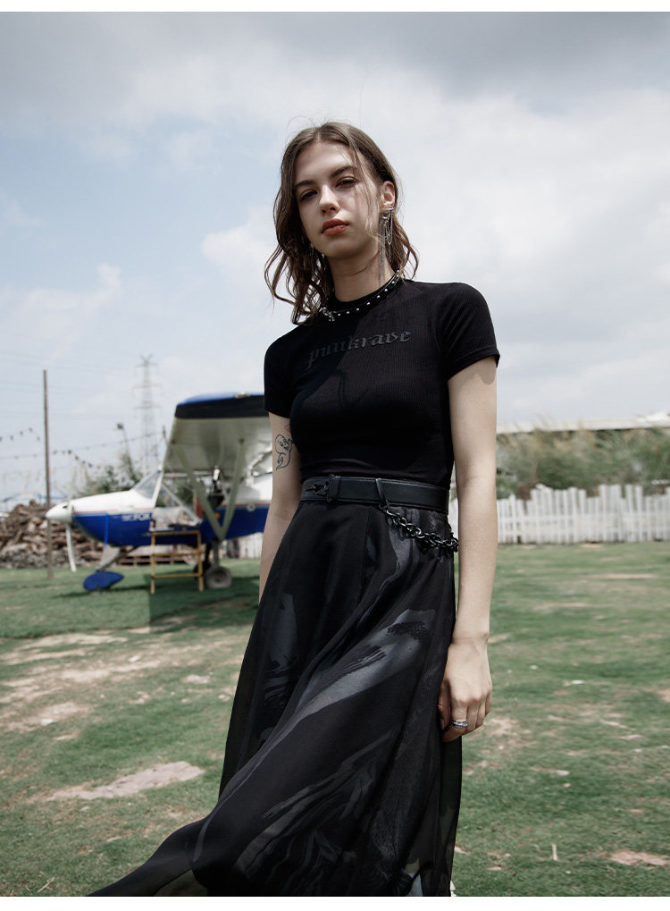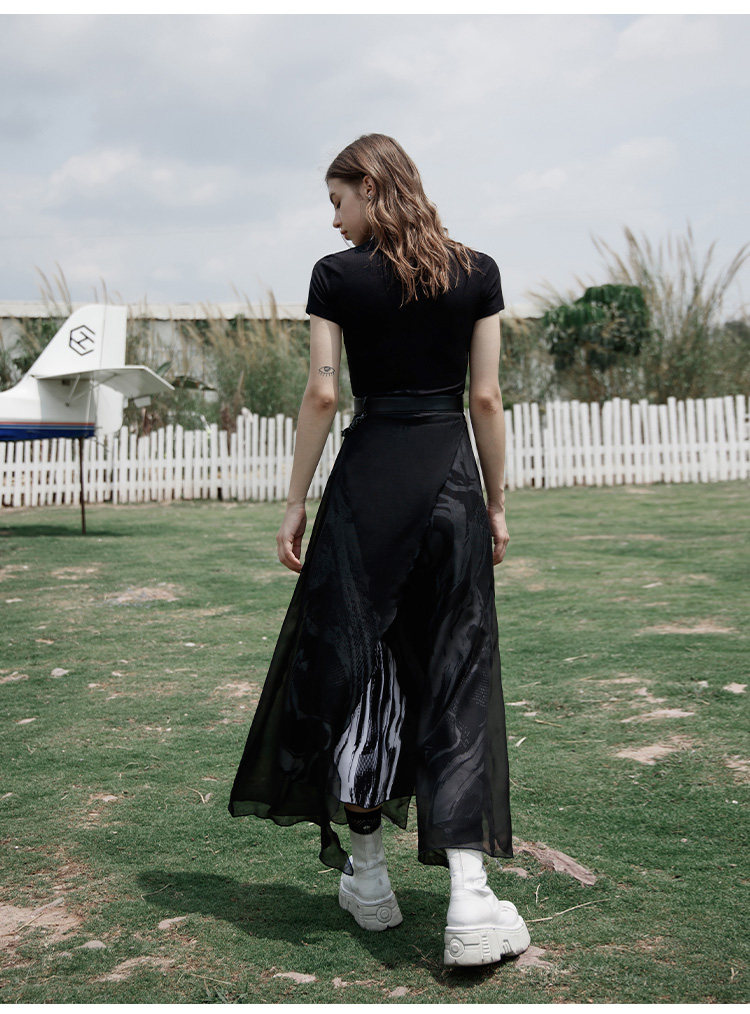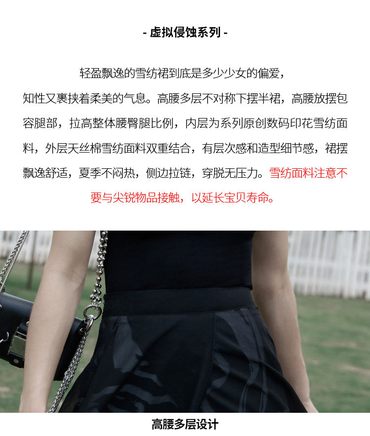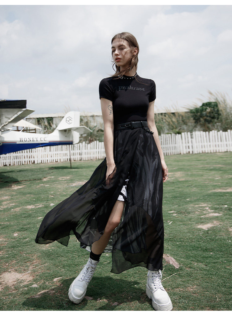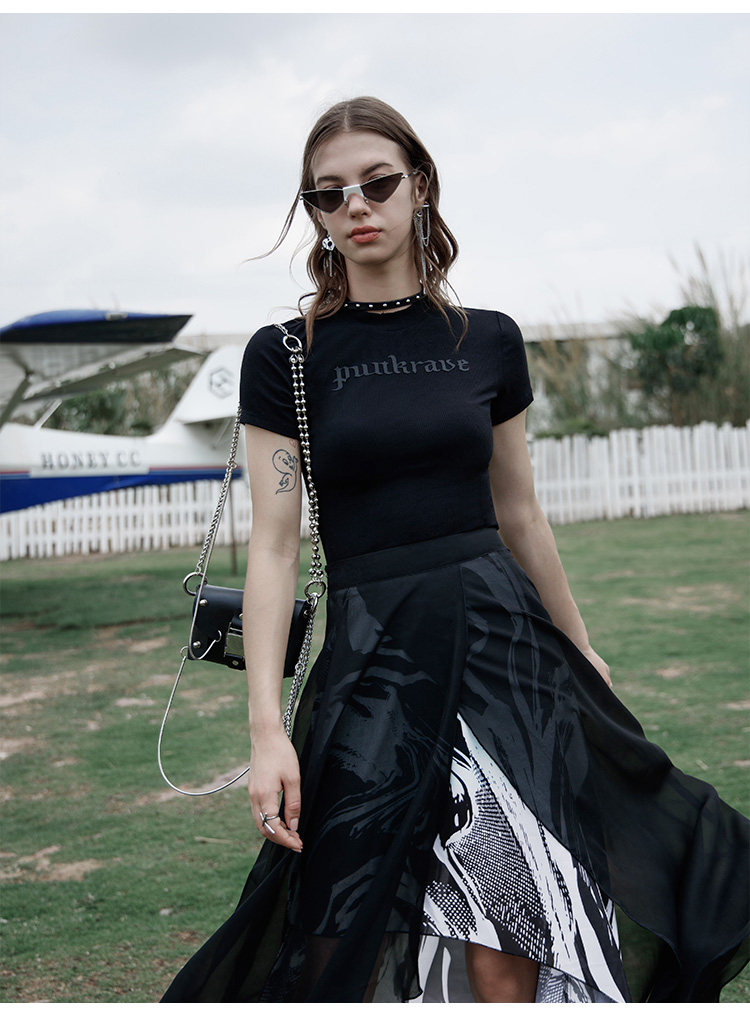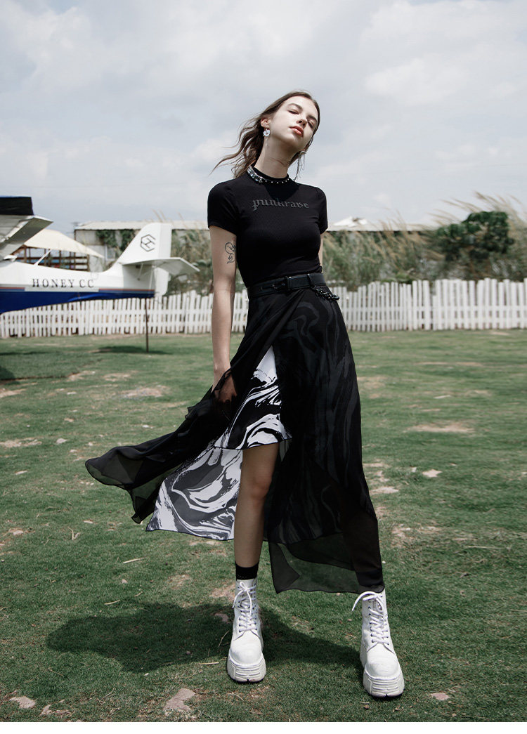 PUNK RAVE Длинная черная осенняя тонкая шифоновая юбка, высокая талия, А-силуэт