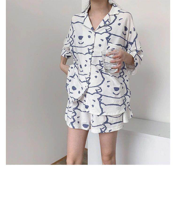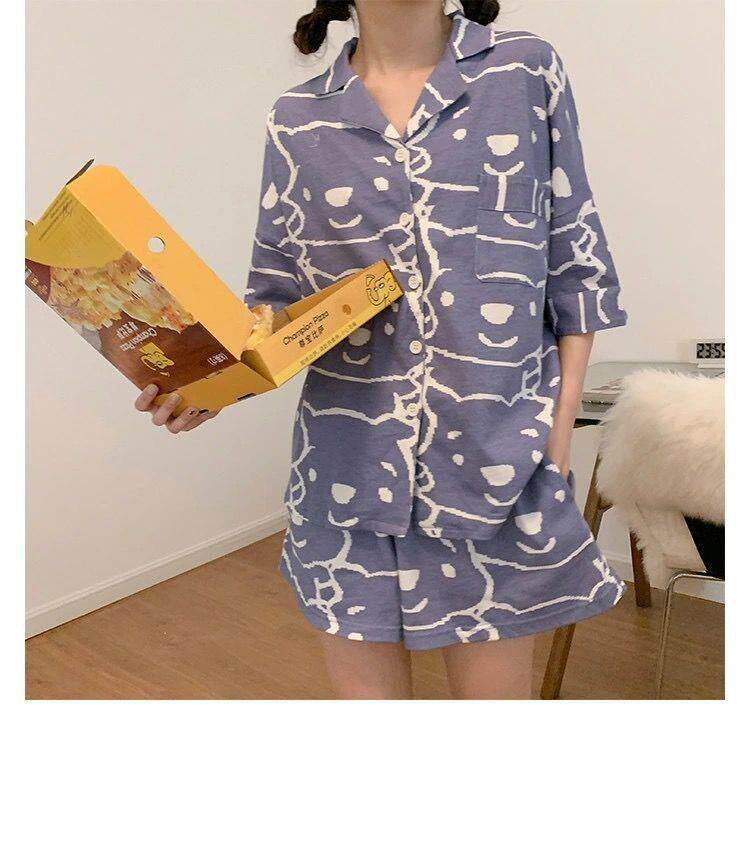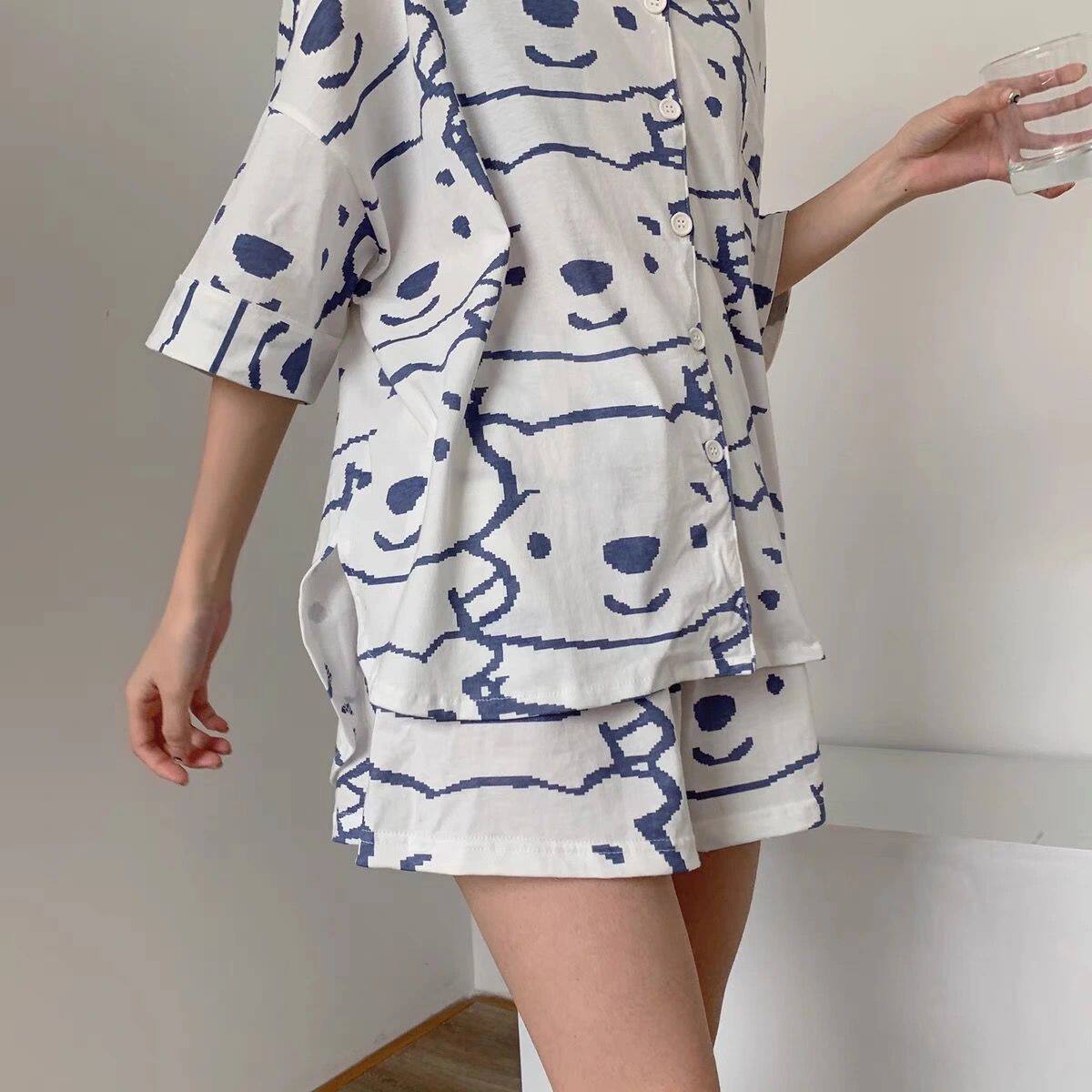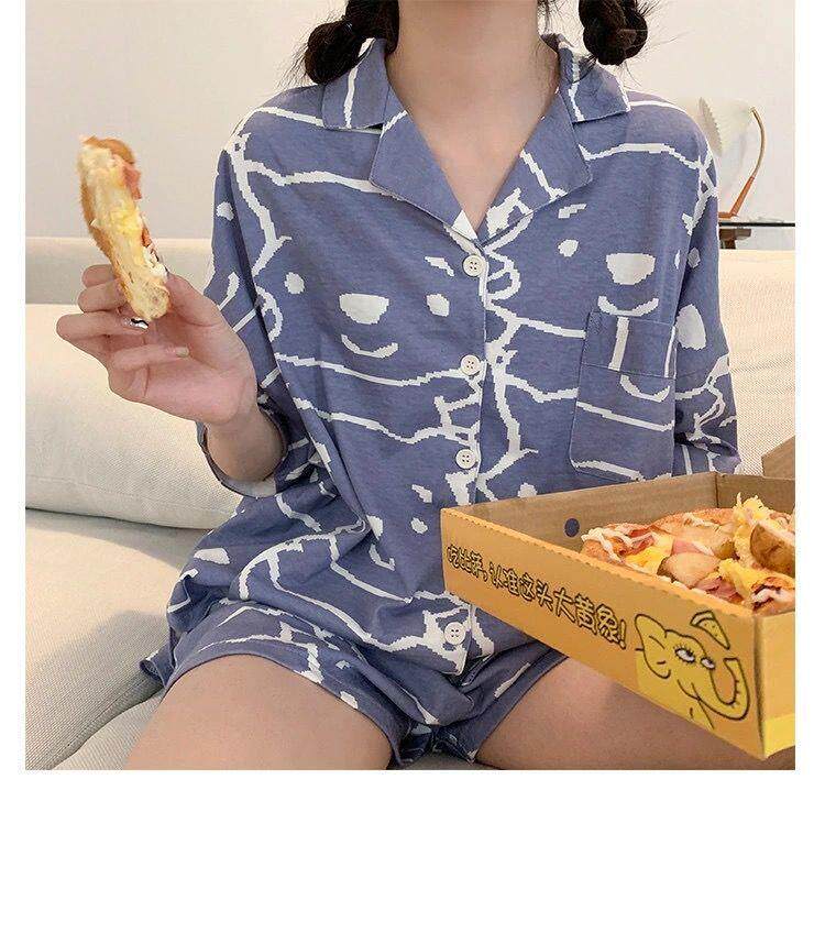 Летняя пижама, милый комплект, шорты, короткий рукав