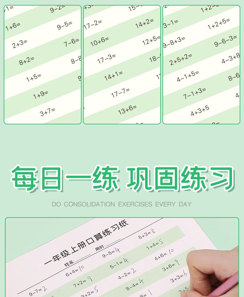 Детские карточки с вопросами для первого класса для устного счета для школьников для обучения математике, цифровая тетрадь для тренировок, практика каждый день, сложение и вычитание, умножение и деление, тренируйтесь каждый день