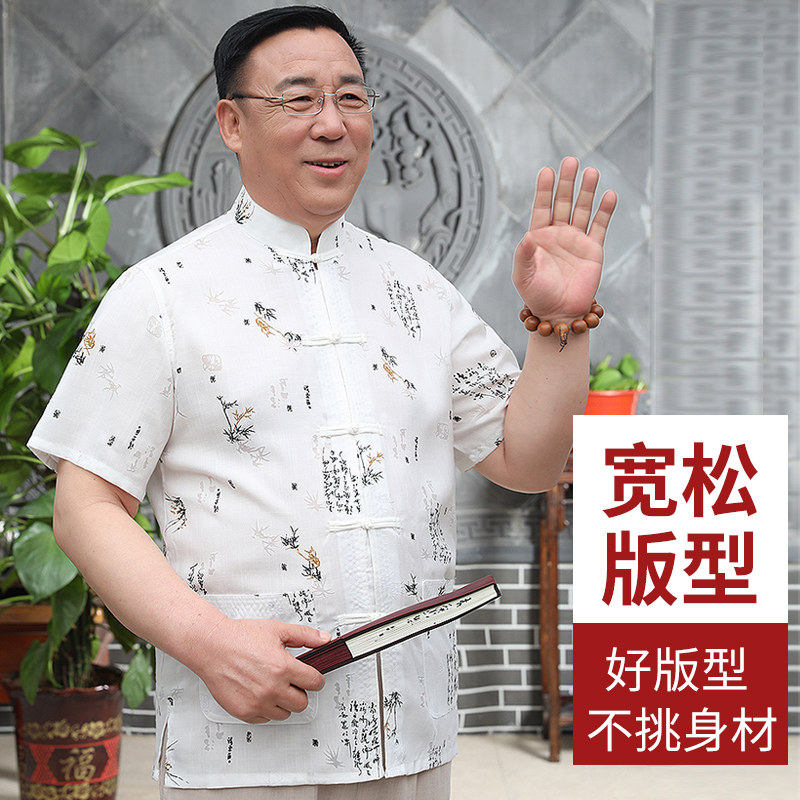 Летняя рубашка, футболка, летняя одежда, для среднего возраста, короткий рукав, китайский стиль