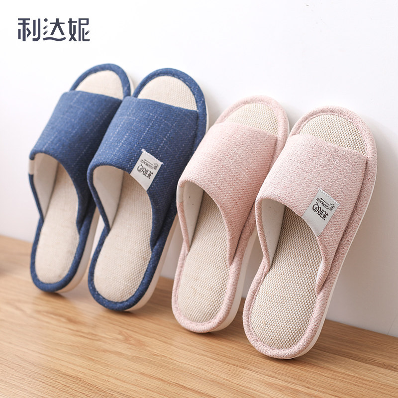 Liney Slippers Женские Xiaju Home Spring and осень, тихий офис, домашний, домашний, хлопок и белье, четыре сезона тапочек, мужчины