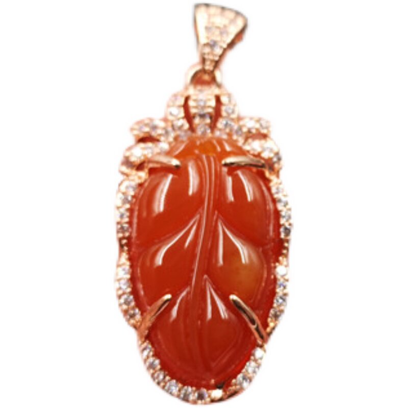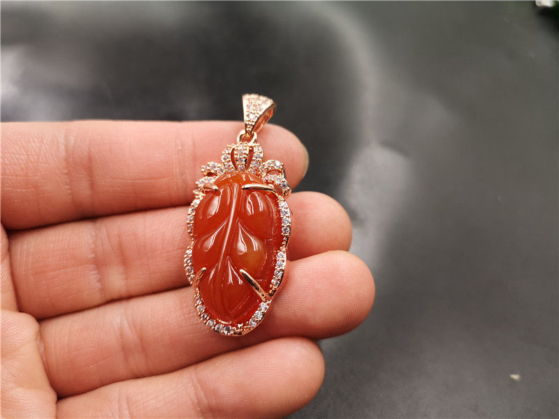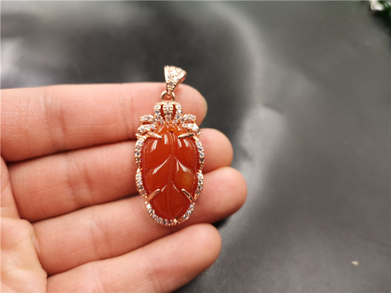Подвеска из красного агата с инкрустацией из нефрита