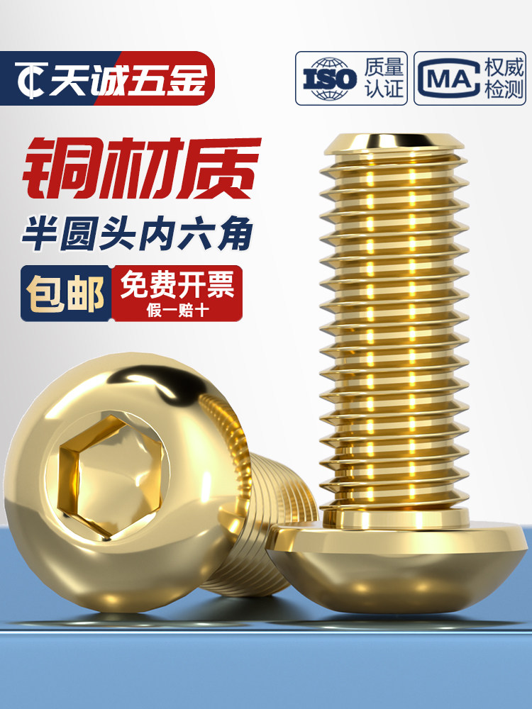Национальный стандарт, винты с шестигранной головкой из чистой латуни, медные винты с грибовидной головкой и круглой головкой, все M3M4M5M6M8Mm