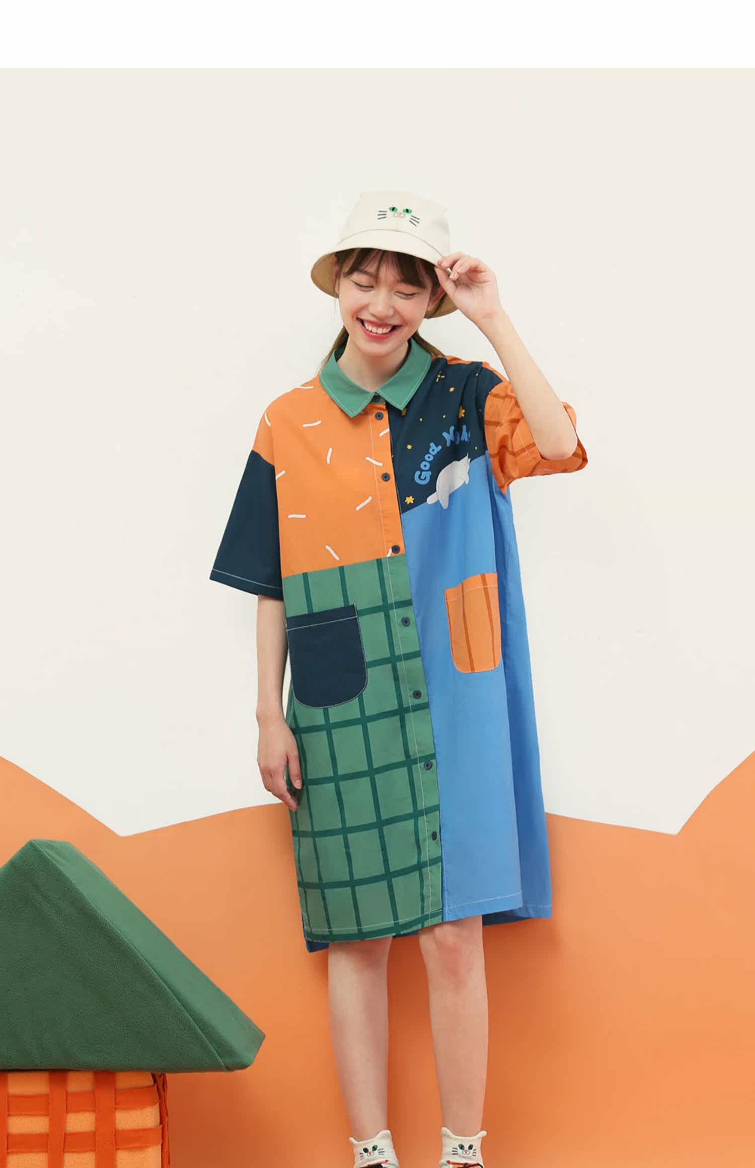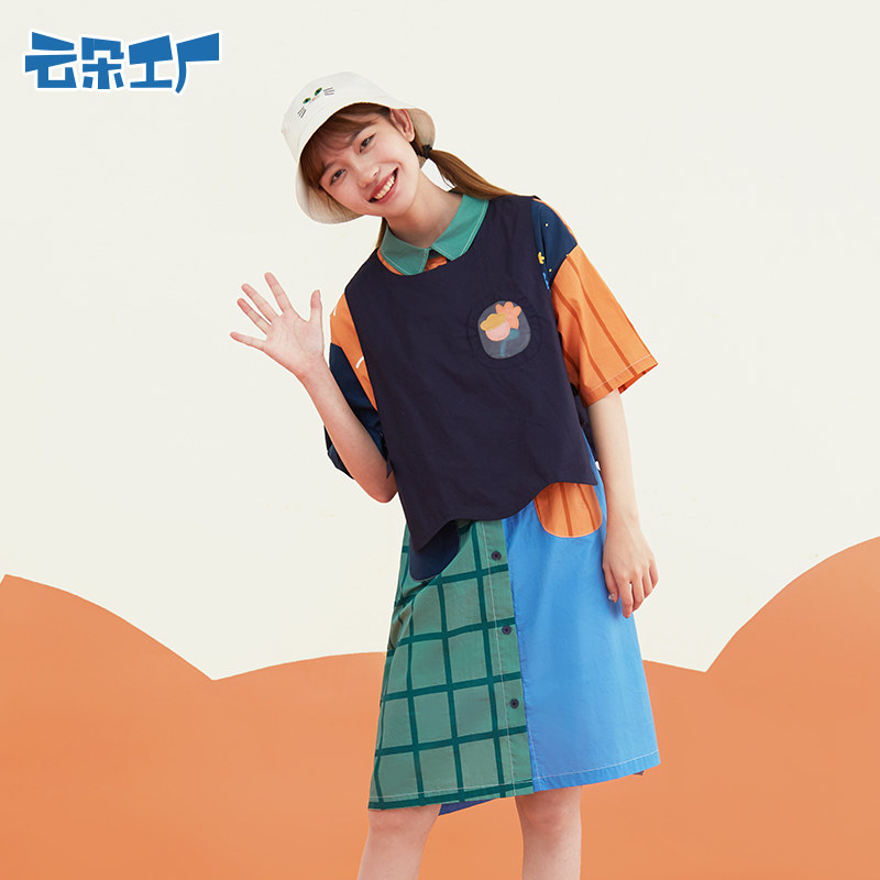 云朵工厂 Рубашка, летняя юбка, платье с коротким рукавом для отдыха, средней длины, короткий рукав