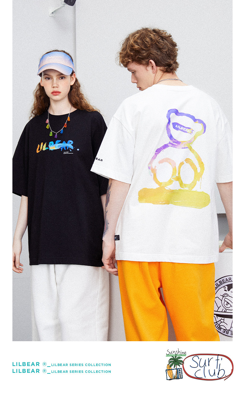 Lilbetter Футболка, летняя хлопковая парная одежда для влюбленных, с медвежатами, короткий рукав