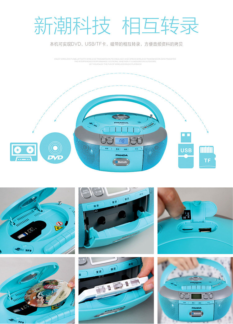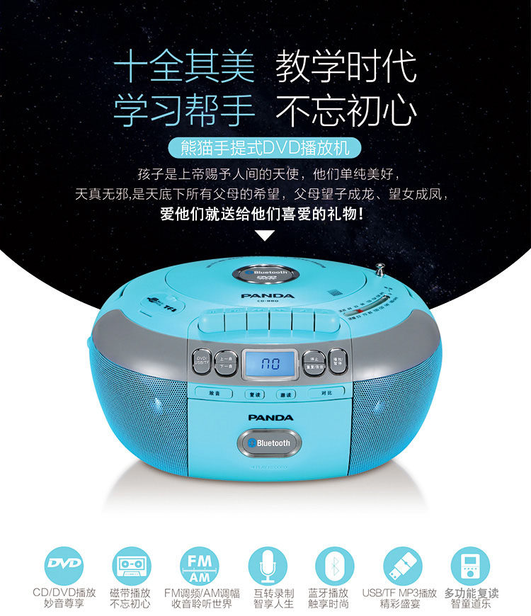 Panda Portable CD Player DVD DVD -магнитофон включает в себя CD -ROM Radio Radio Bluetooth Audio