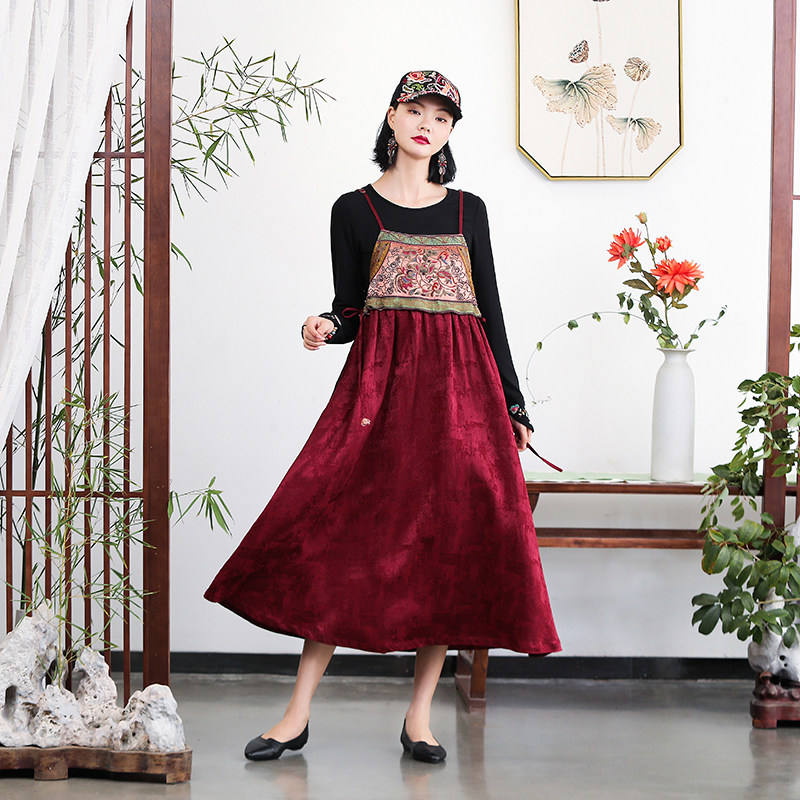 Этническое платье, длинная юбка, коллекция 2021, этнический стиль, эффект подтяжки, облегающий крой, высокая талия