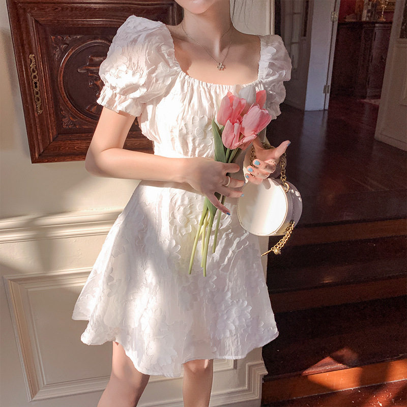 Летнее белое платье, рукава фонарики, квадратный вырез, подходит для подростков