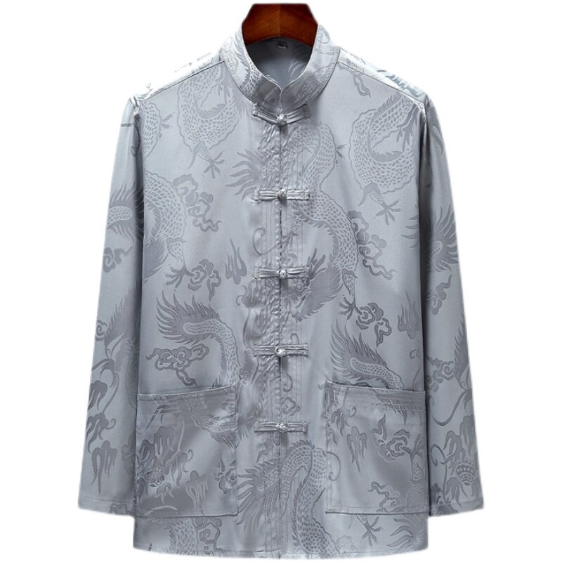 Летний шелковый лонгслив для пожилых людей, нарукавники, комплект, рубашка, ханьфу, для среднего возраста