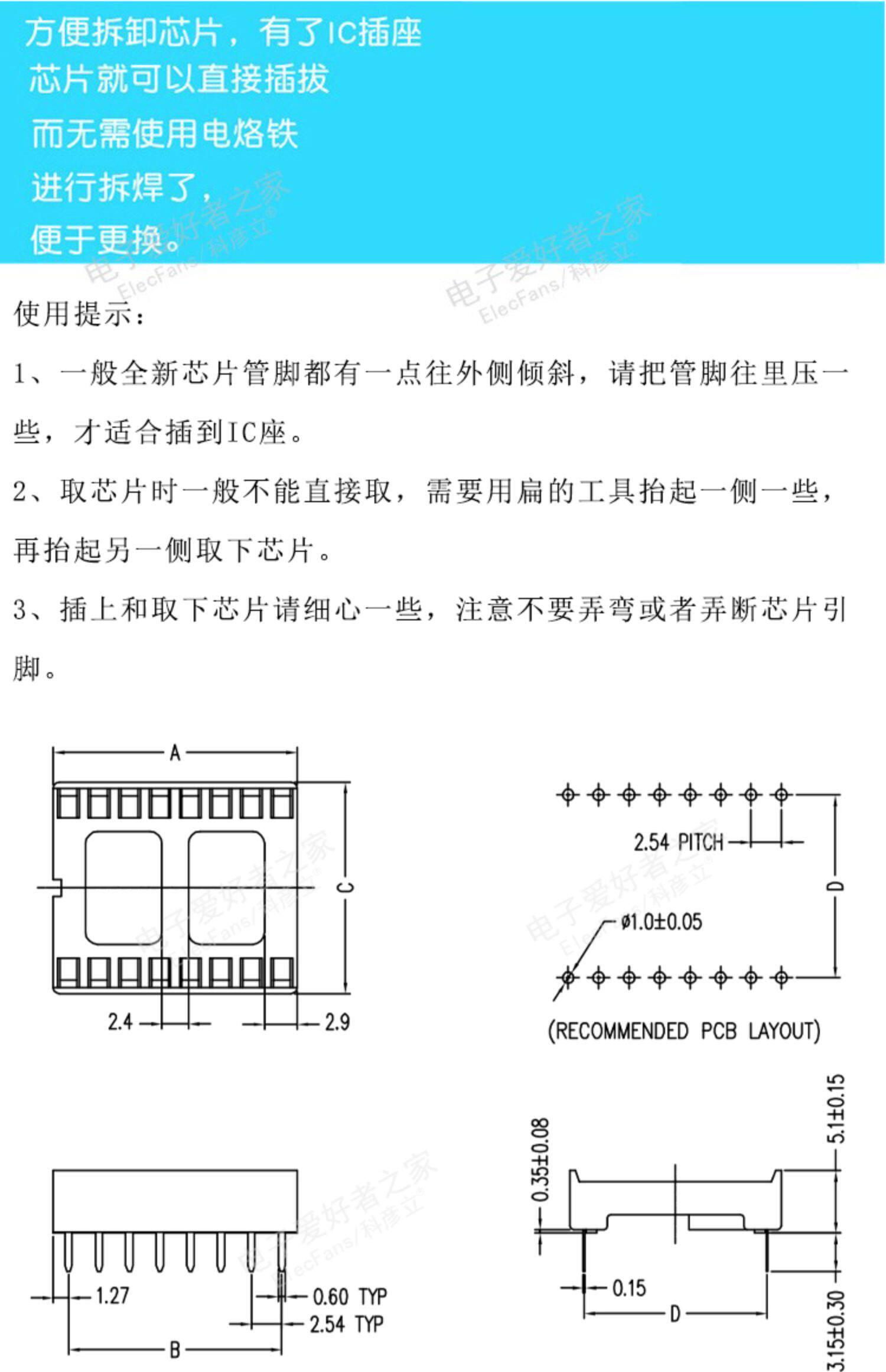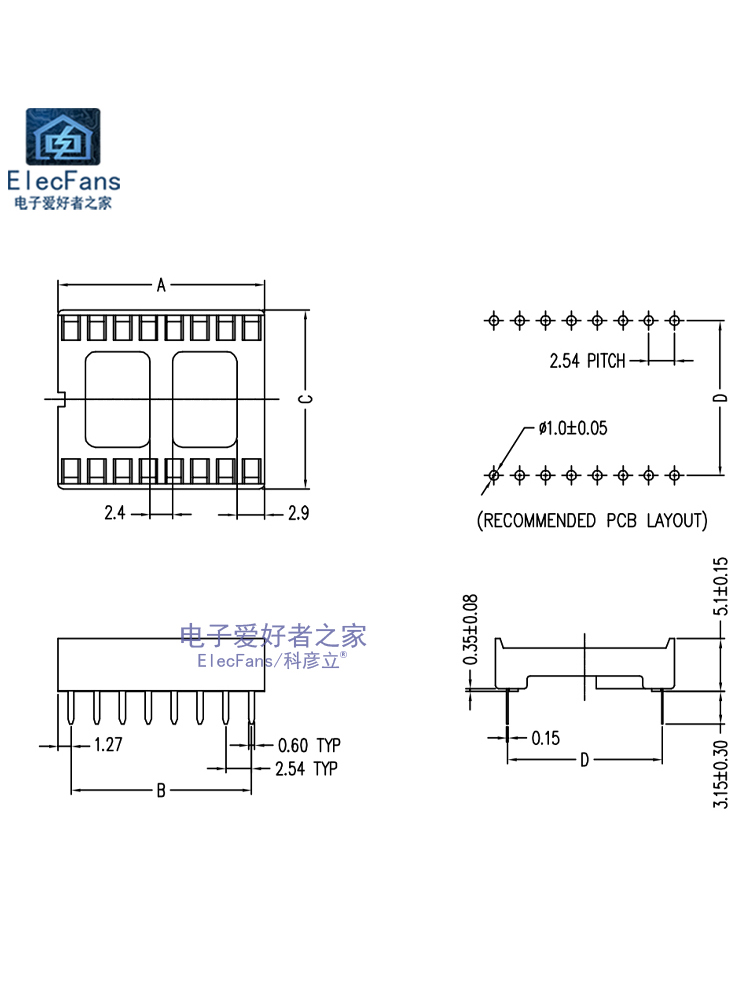 Квадратное отверстие IC -гнездоры базы чип -базы интегрированная схема платы PCB Пекартная плата.