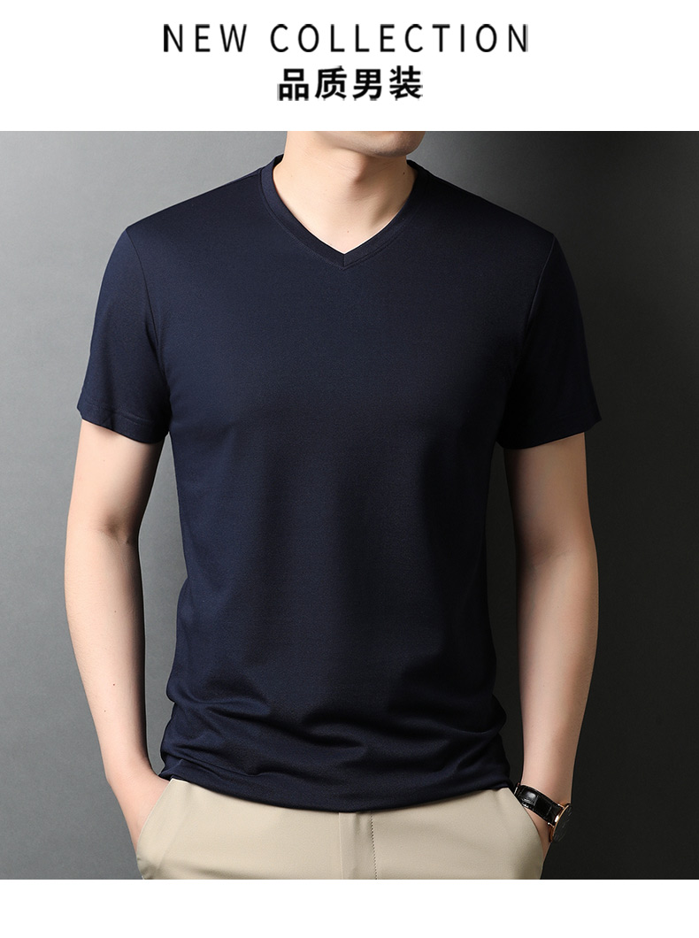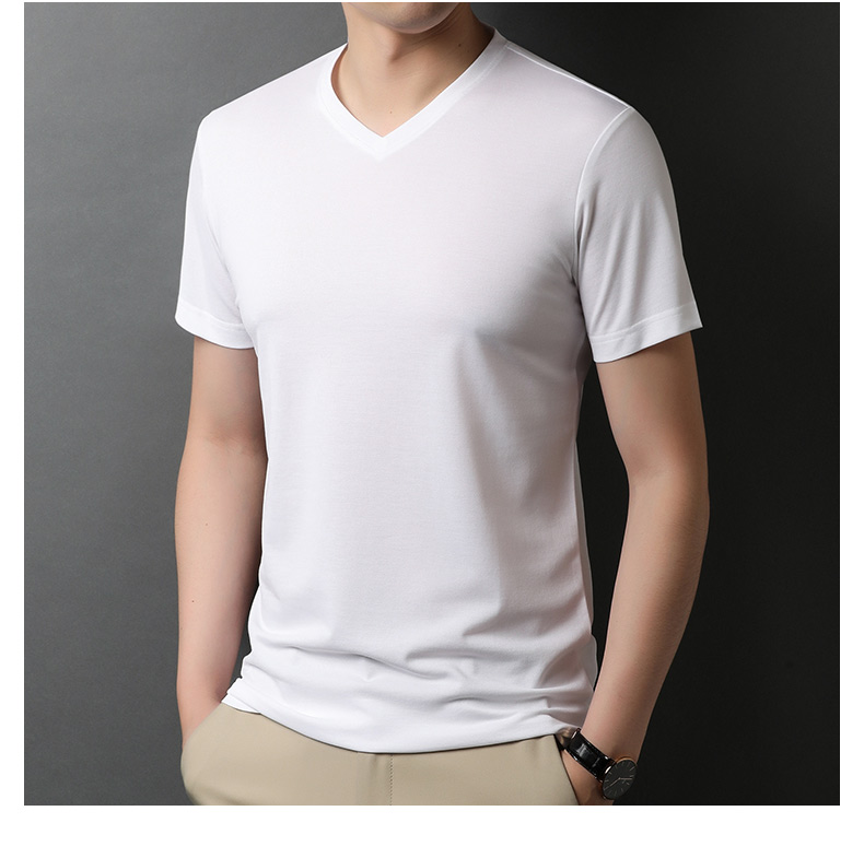 Летняя универсальная приятная телу футболка с коротким рукавом, V-образный вырез