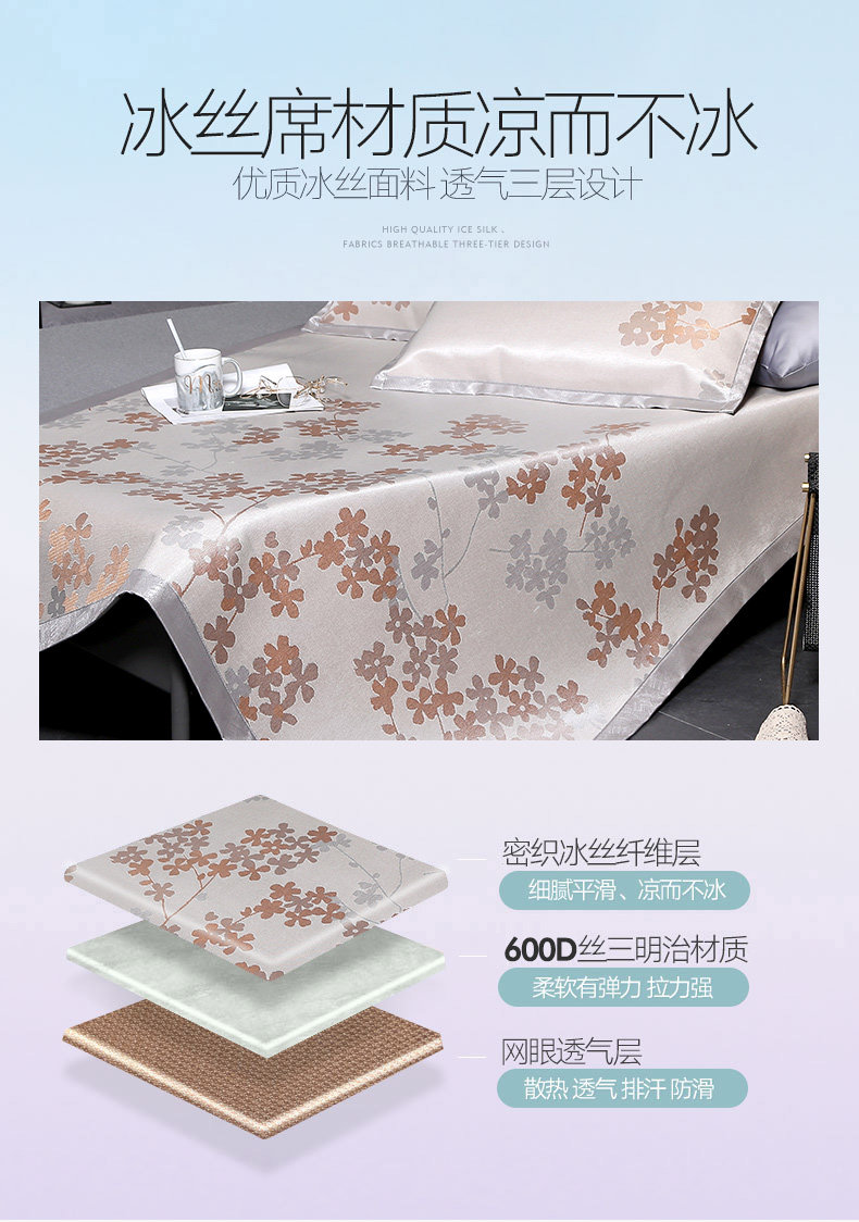Шелковый охлаждающий коврик, складной комплект, 3 предмета, можно стирать