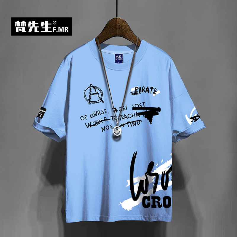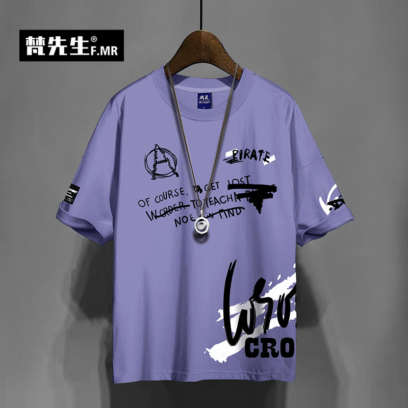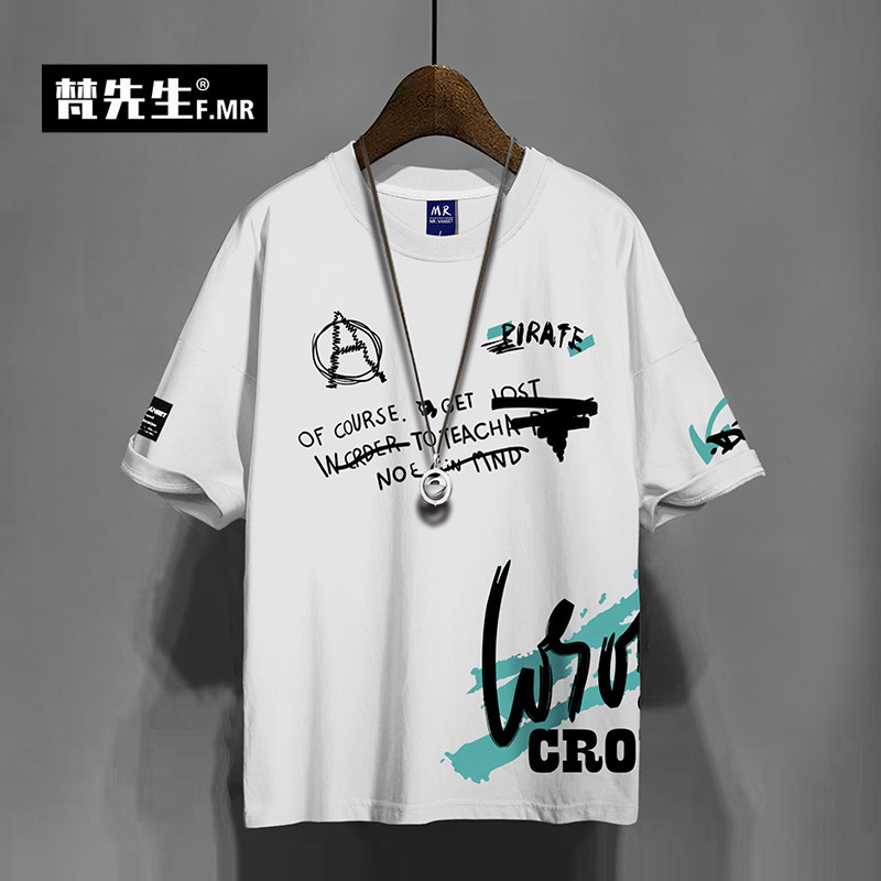Летняя брендовая хлопковая футболка с коротким рукавом в стиле хип-хоп, большой размер