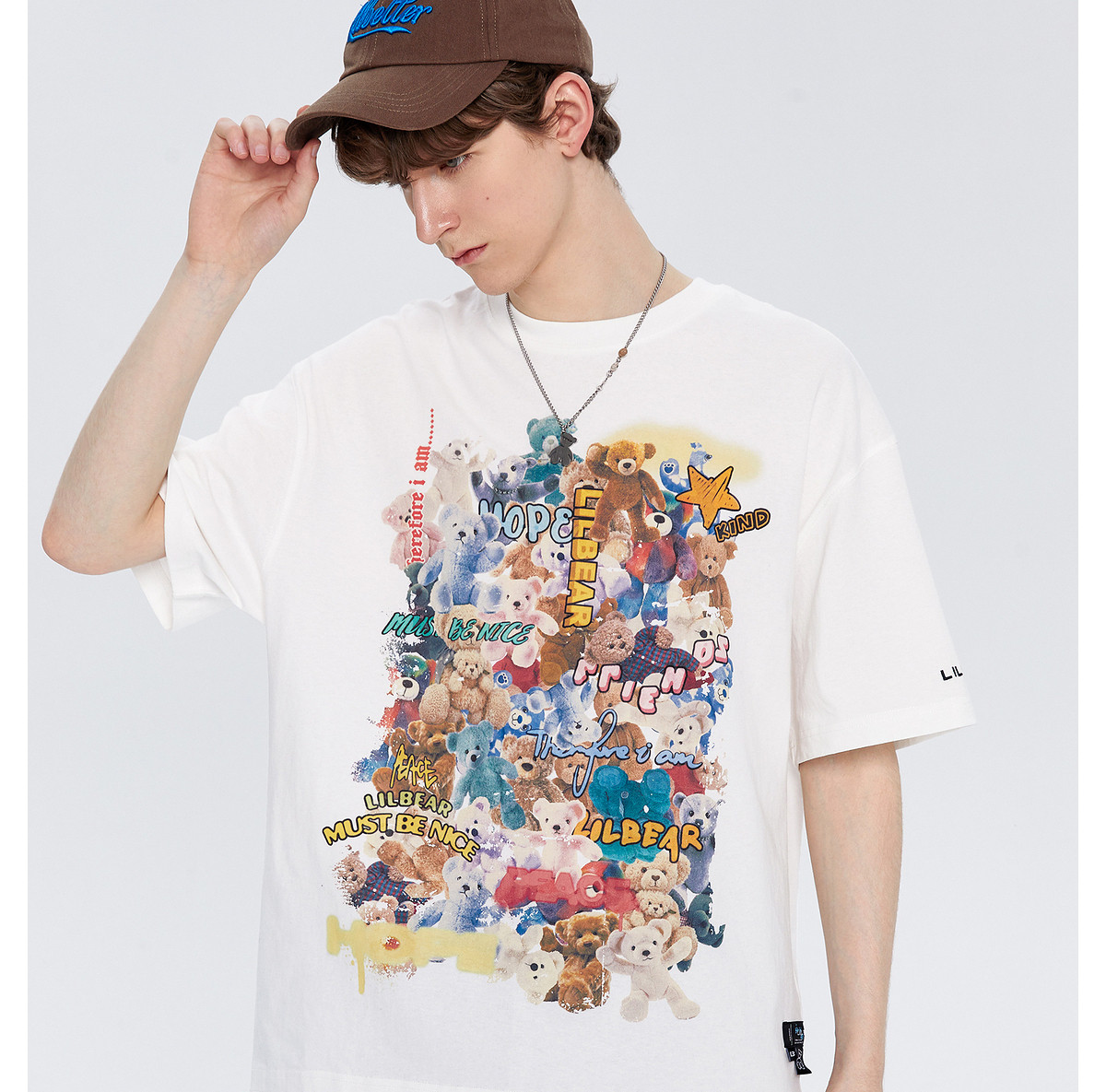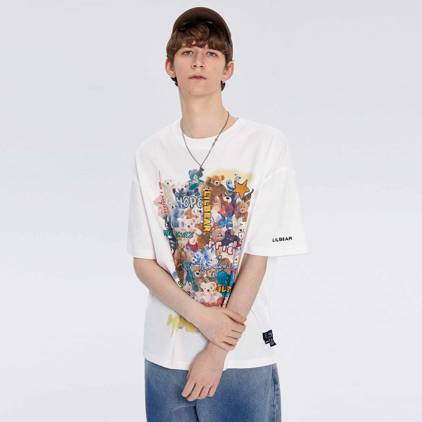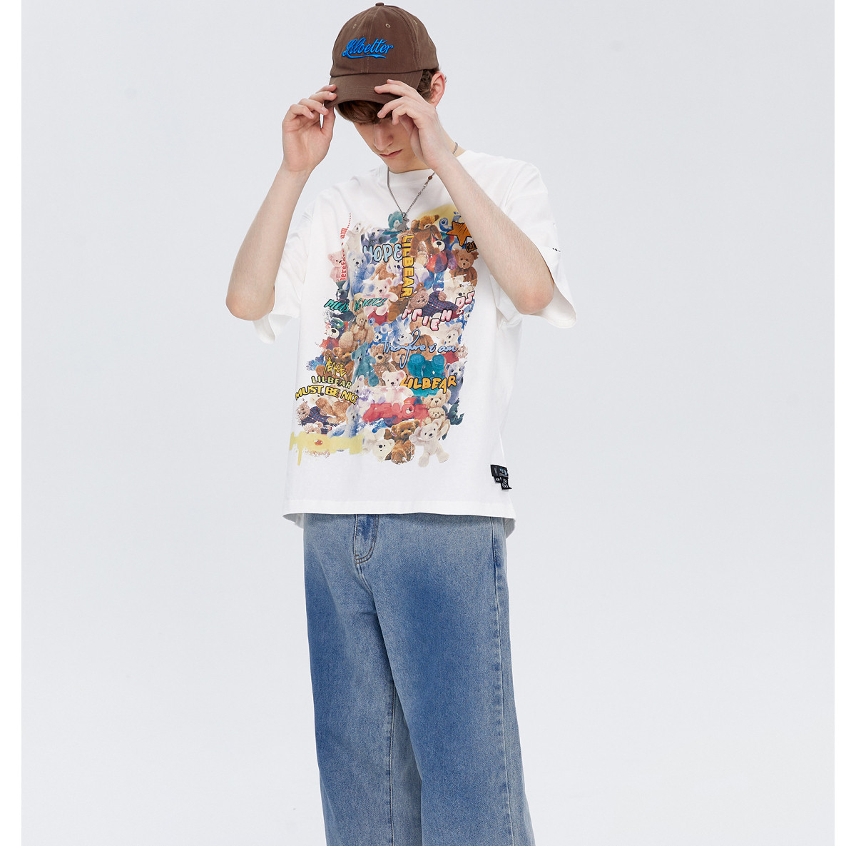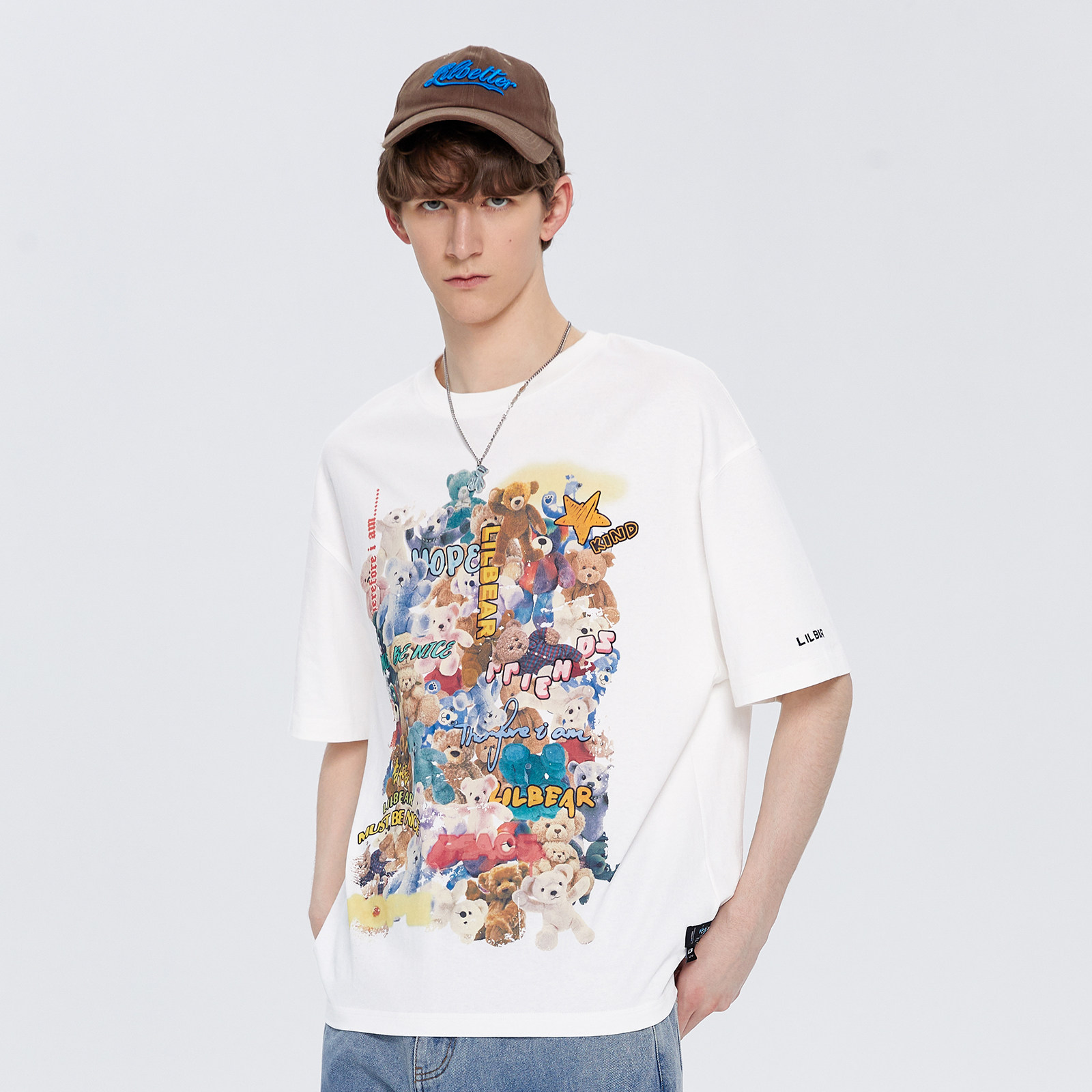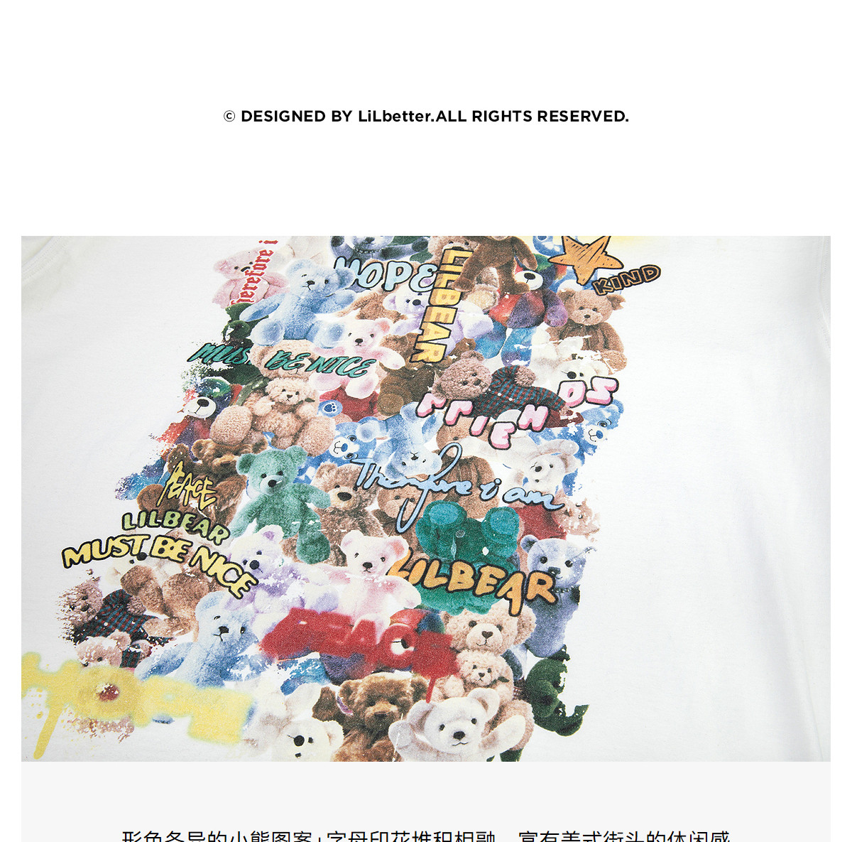 Lilbetter Летняя хлопковая футболка, с медвежатами, свободный крой, короткий рукав