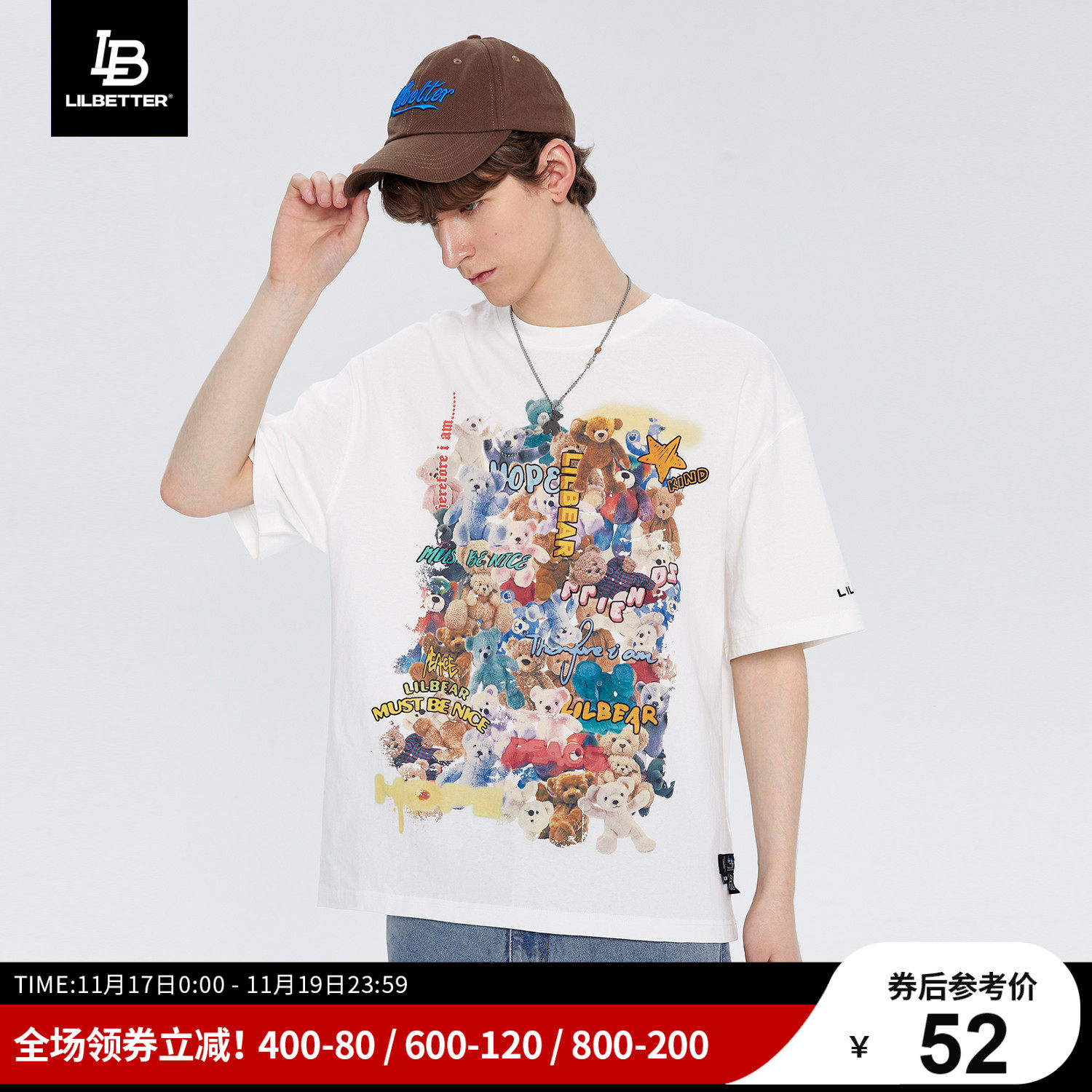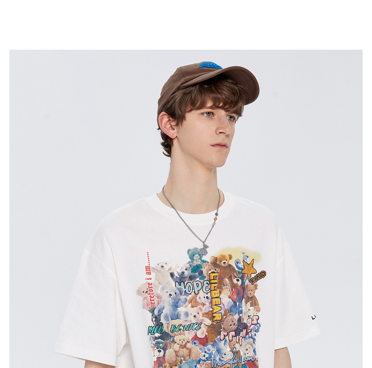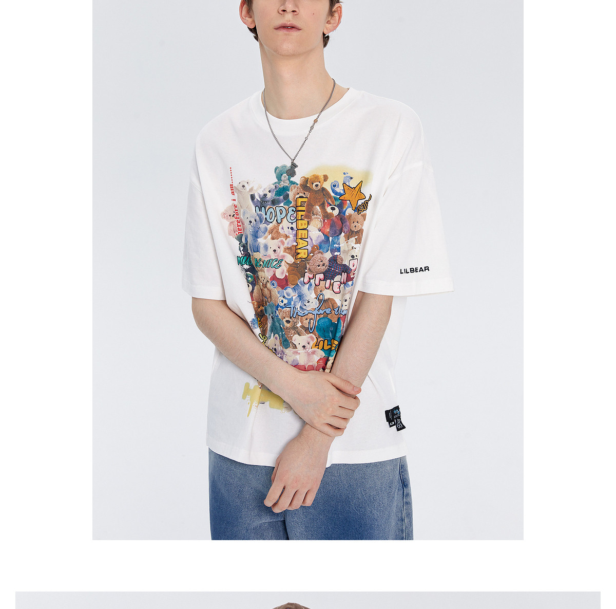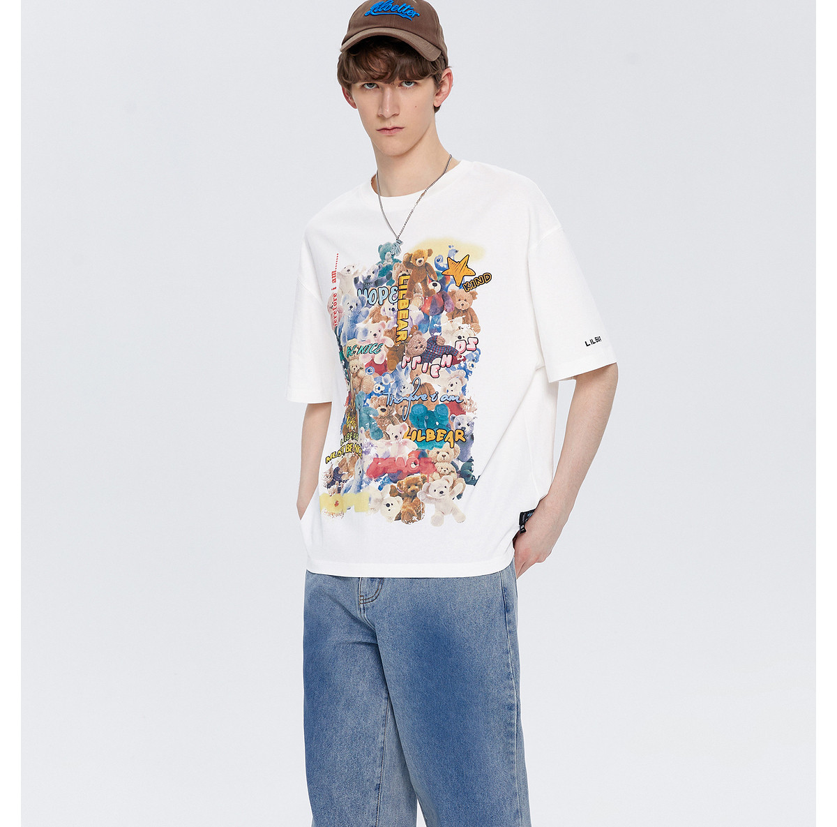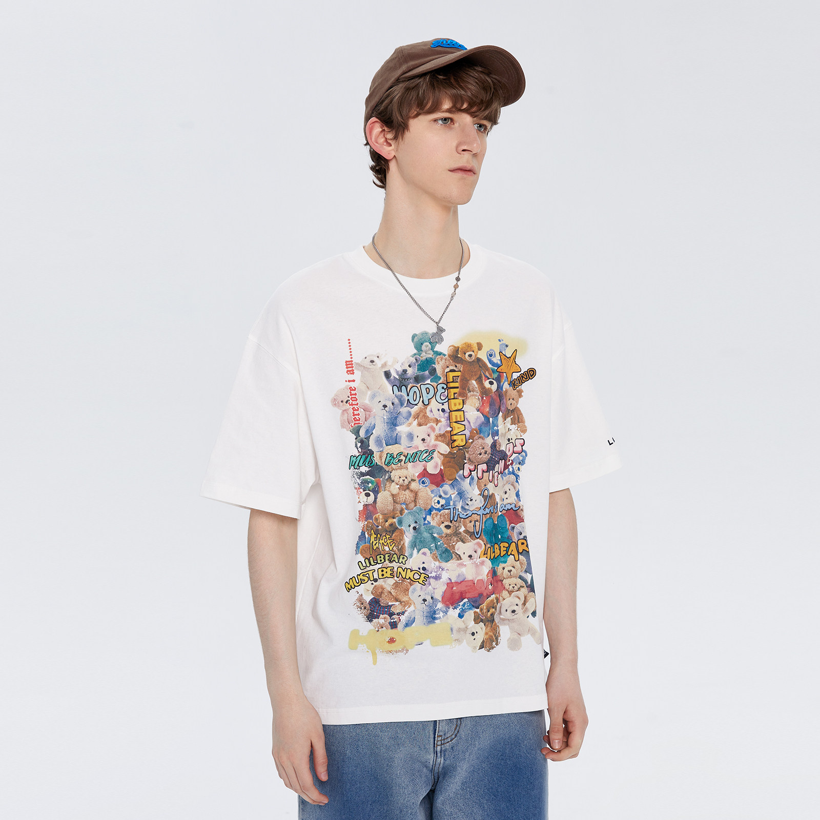 Lilbetter Летняя хлопковая футболка, с медвежатами, свободный крой, короткий рукав