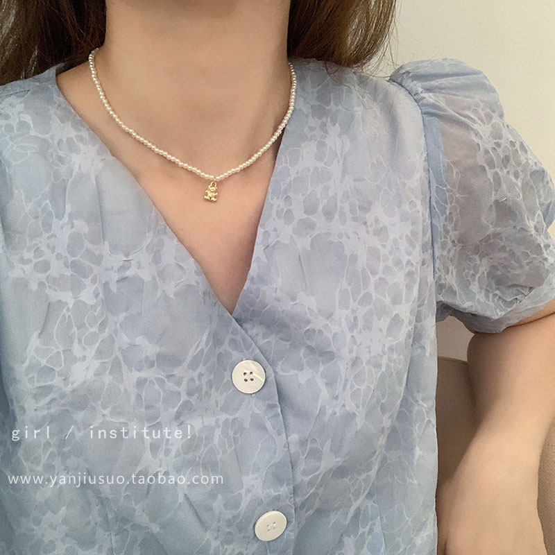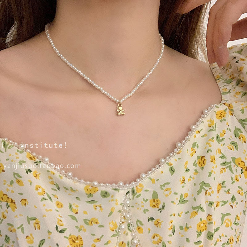 Брендовое ожерелье из жемчуга, цепочка до ключиц, аксессуар, 2021 года, с медвежатами, простой и элегантный дизайн