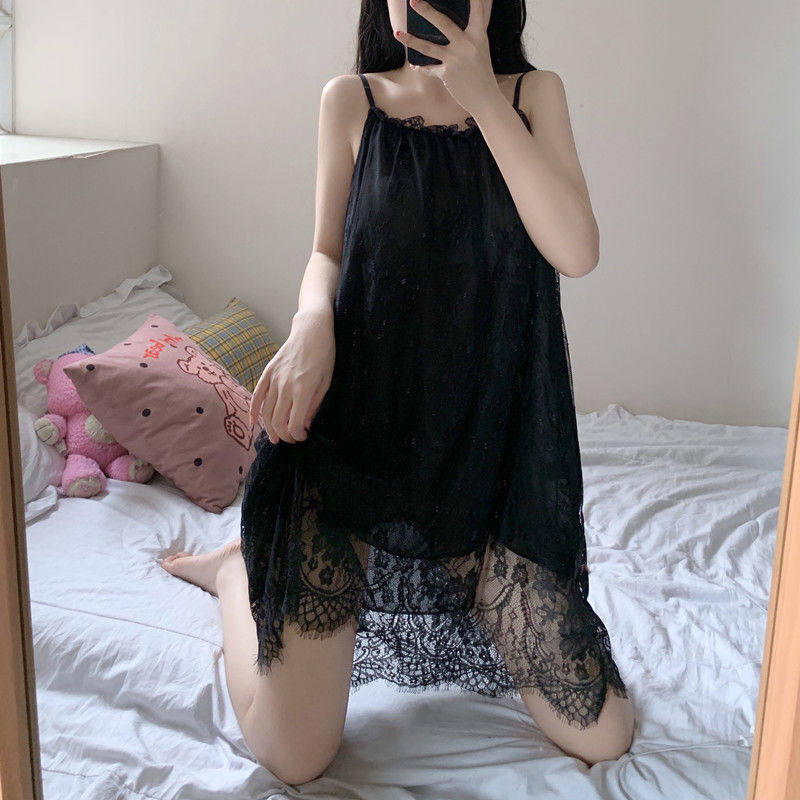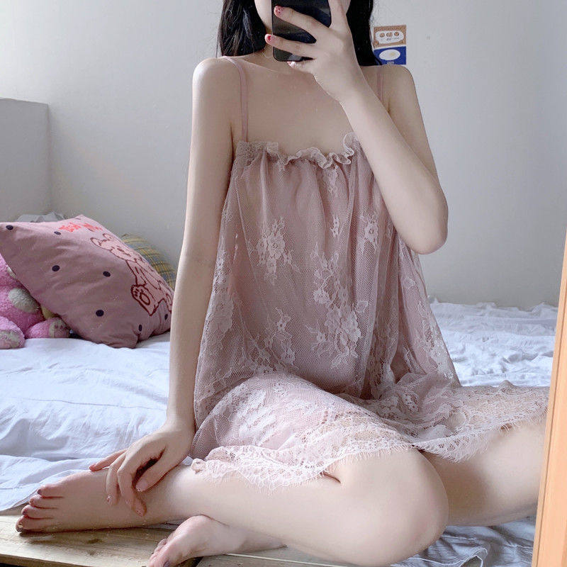 Летняя пижама, сексуальная милая шелковая тонкая кружевная юбка без рукавов, эффект подтяжки