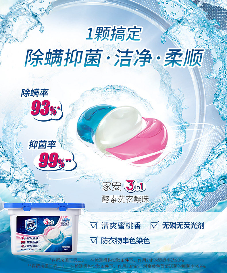 Капсулы для стирки, концентрированный шарик для стирки, стиральный порошок, 18 шт