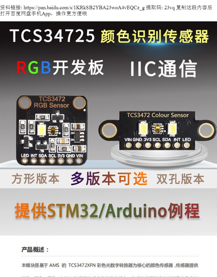 TCS34725 Датчик распознавания цвета ярко -световой индукционный модуль RGB IIC поддерживает Arduion STM32