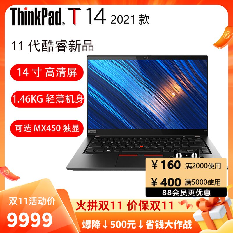 Lenovo, дизайнерский элитный легкий портативный ноутбук, коллекция 2021, thinkpad, T14, intel core i7, 14 дюймов, бизнес-версия