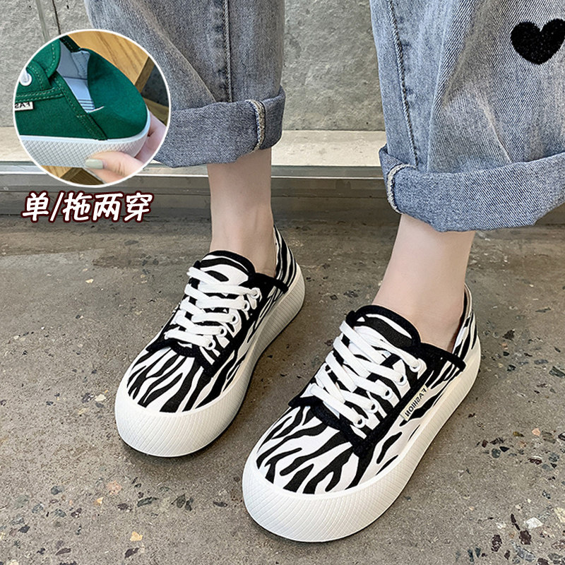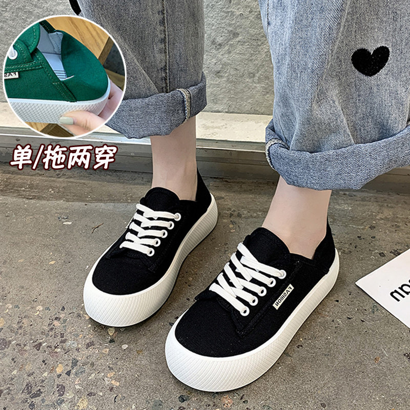 Двухразовые парусиновые туфли на толстой подошве, тонкие модели, новинки лета 2021 года, универсальные спортивные и повседневные кроссовки на одну ногу, женская обувь.