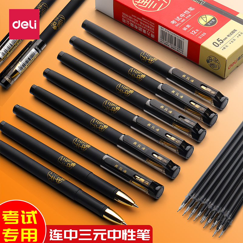 Ручка-роллер для школьников, черные быстросохнущие цветные карандаши, канцтовары, комплект, трубка, пуля, 0.5мм