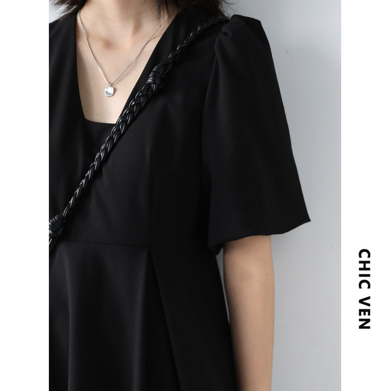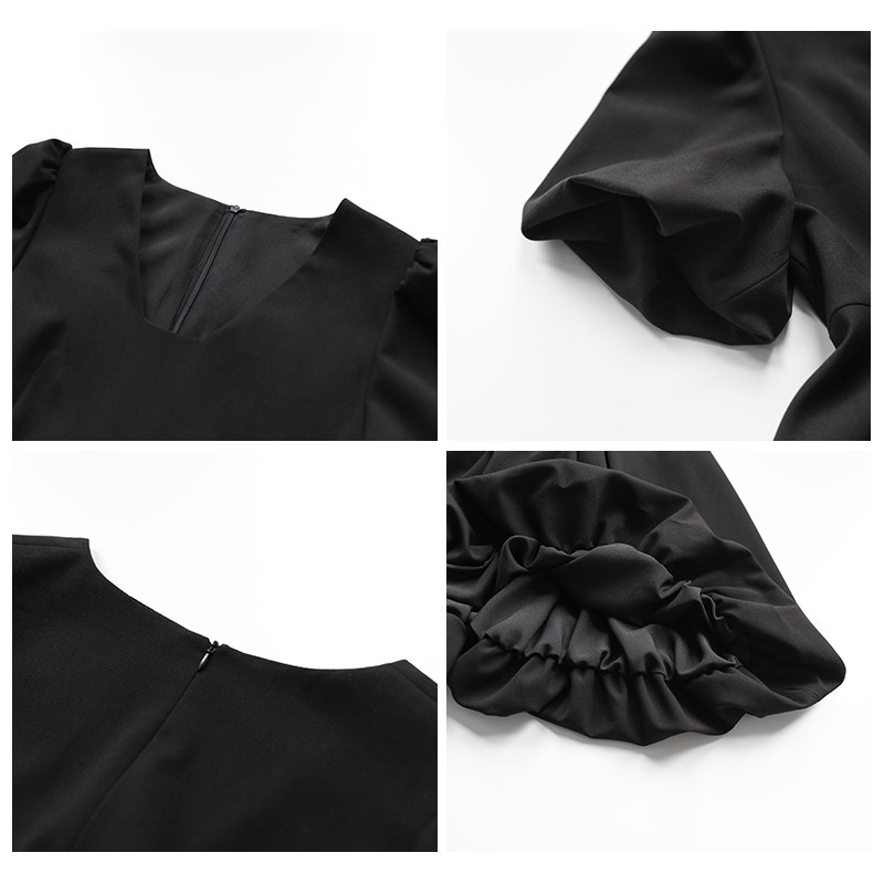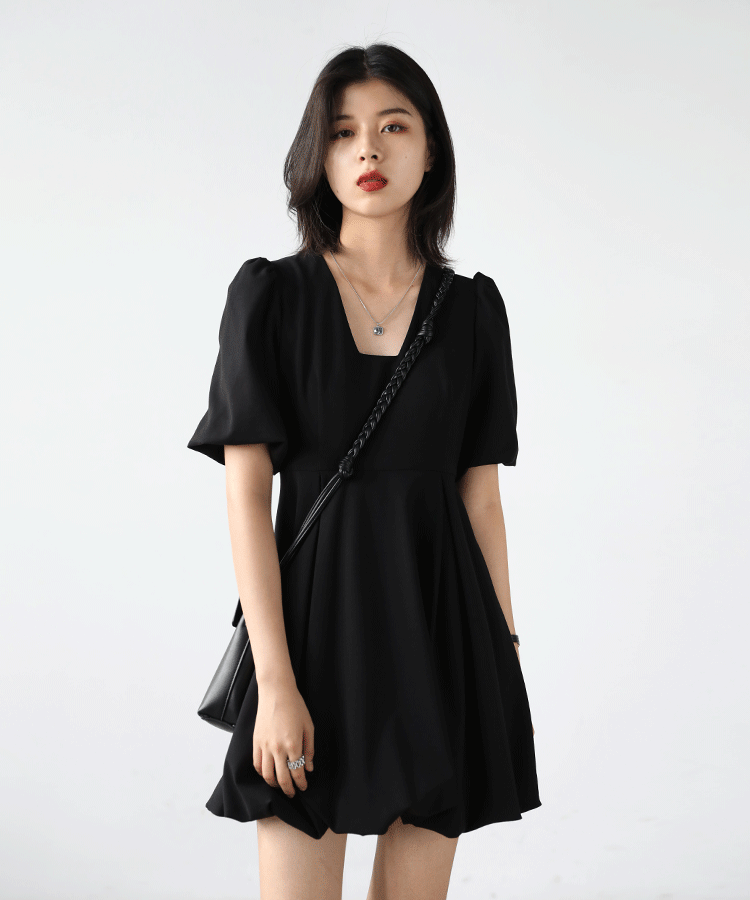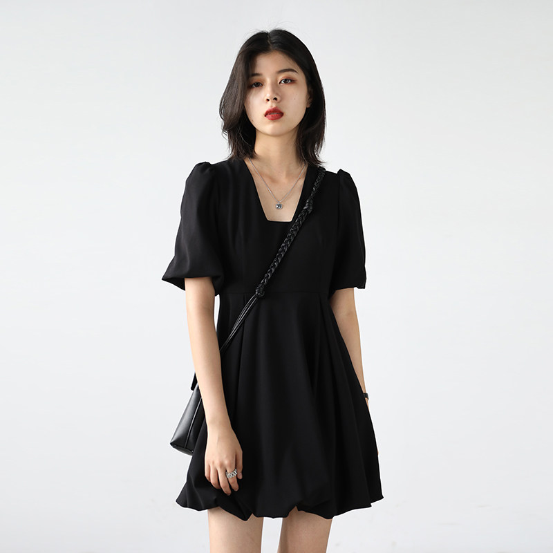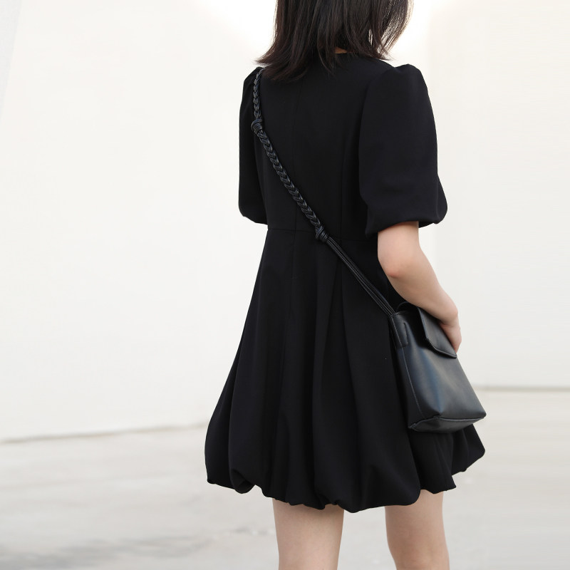Шикарная "о будущем" ретро -нишевый пузырьковый рукав платье для юбки летняя лестничная воротника маленькая черная юбка