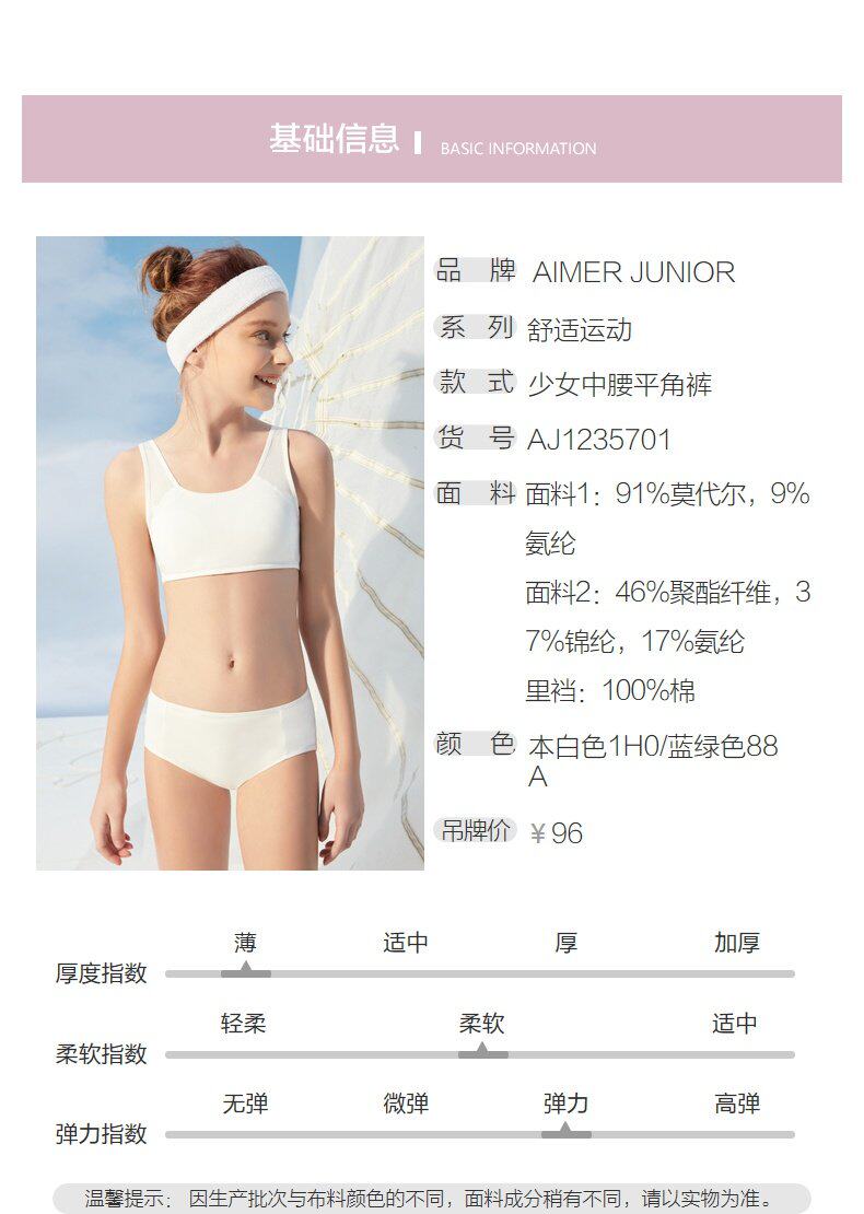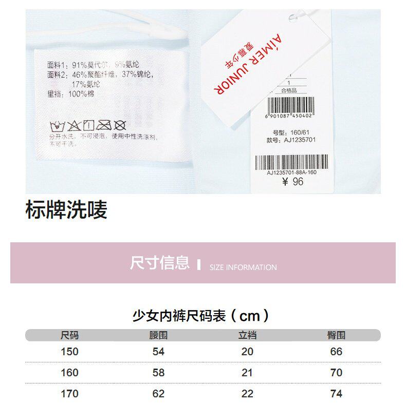 爱慕 Младшие трусики девочки удобная модель движения гладкие девочки Средняя талия плоские брюки AJ1235701
