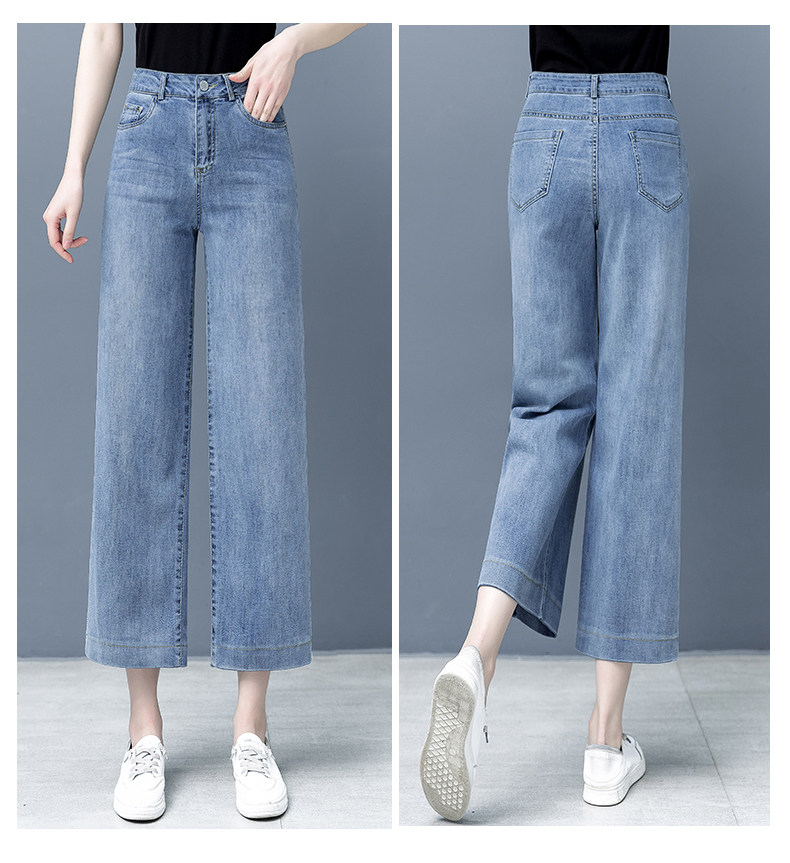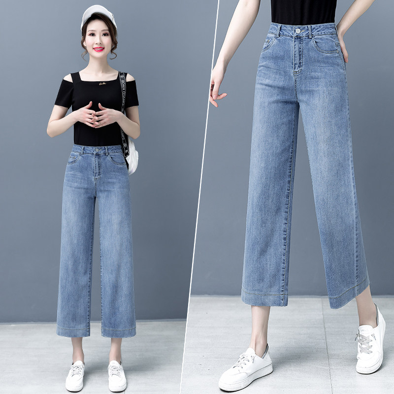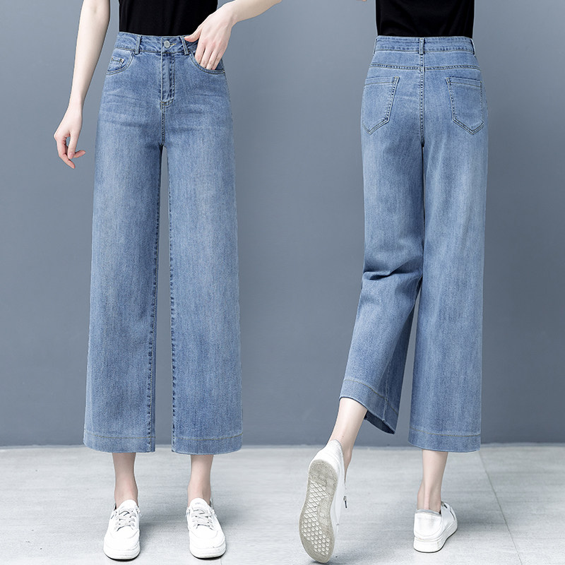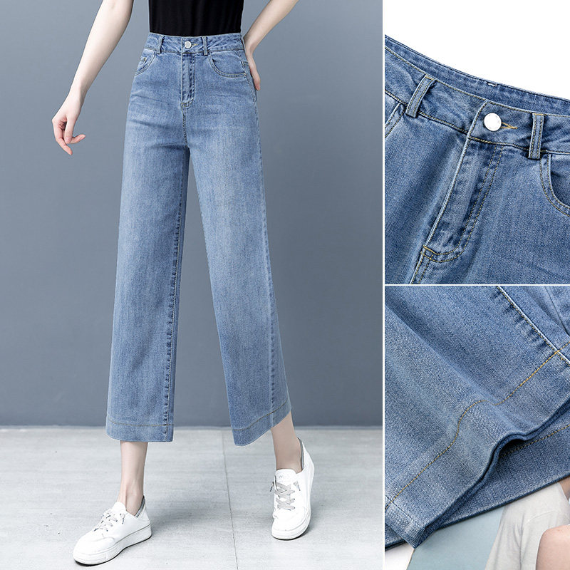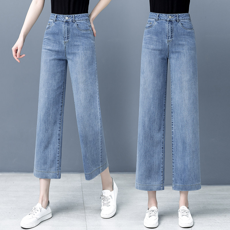 Тонкие джинсовые летние штаны, высокая талия, свободный прямой крой
