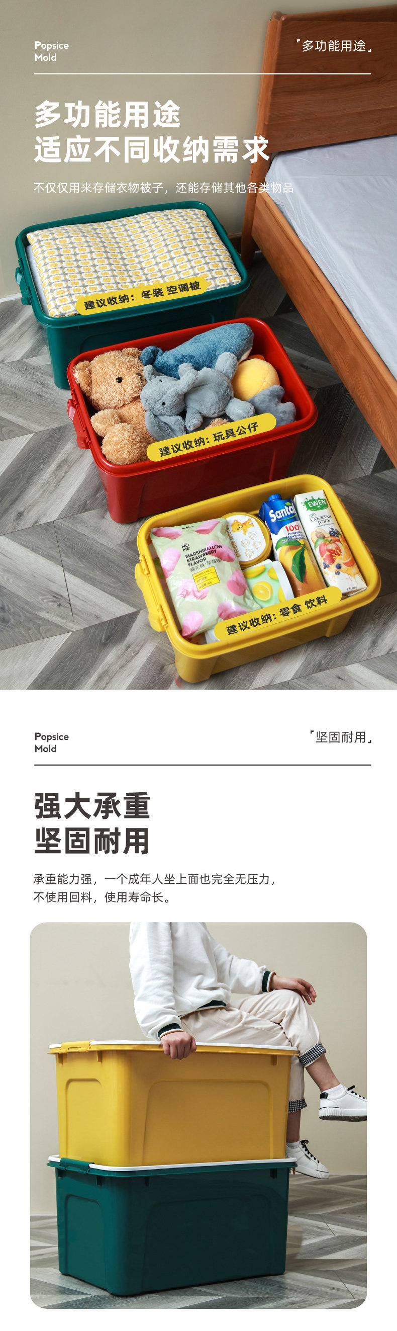 Большой пластиковый ящик для хранения, нижнее белье, система хранения, коробка, увеличенная толщина