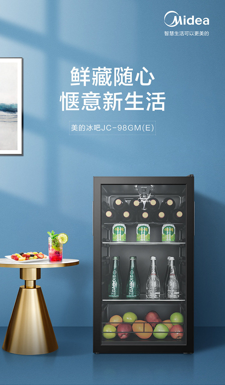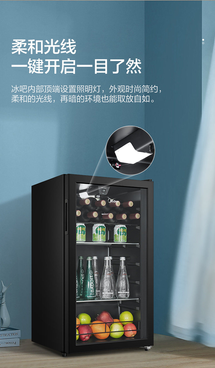 Midea 98 ледяной бар, бытовой маленький холодильник, холодильник для гостиной, шкаф для напитков, винный шкаф, шкаф для свежего чая, маленькая морозильная камера