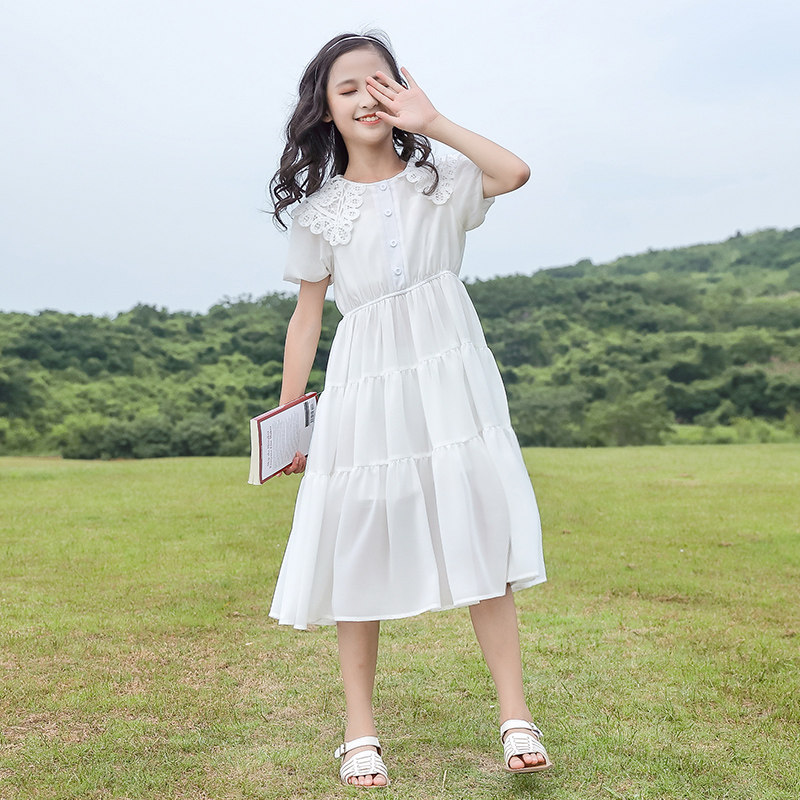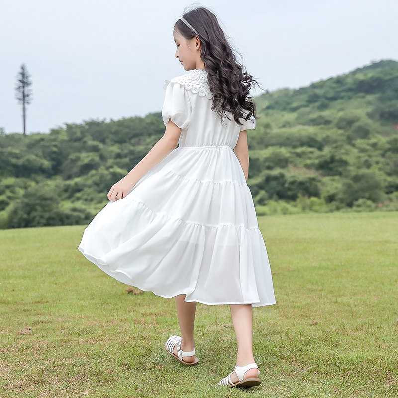 Шифоновое летнее платье, тонкая юбка, детская летняя одежда, наряд маленькой принцессы, коллекция 2021, подходит для подростков, детская одежда, короткий рукав