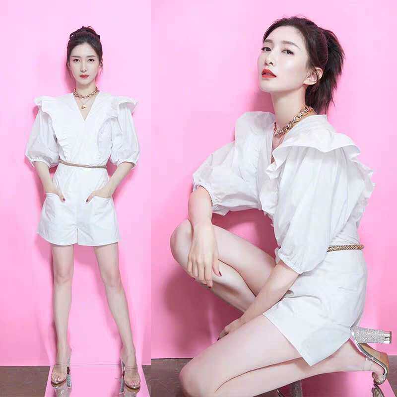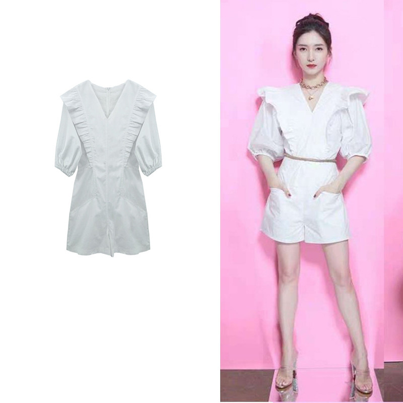 Летний белый корсет для отдыха, комбинезон, V-образный вырез, короткий рукав