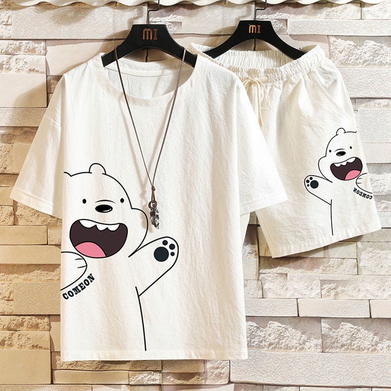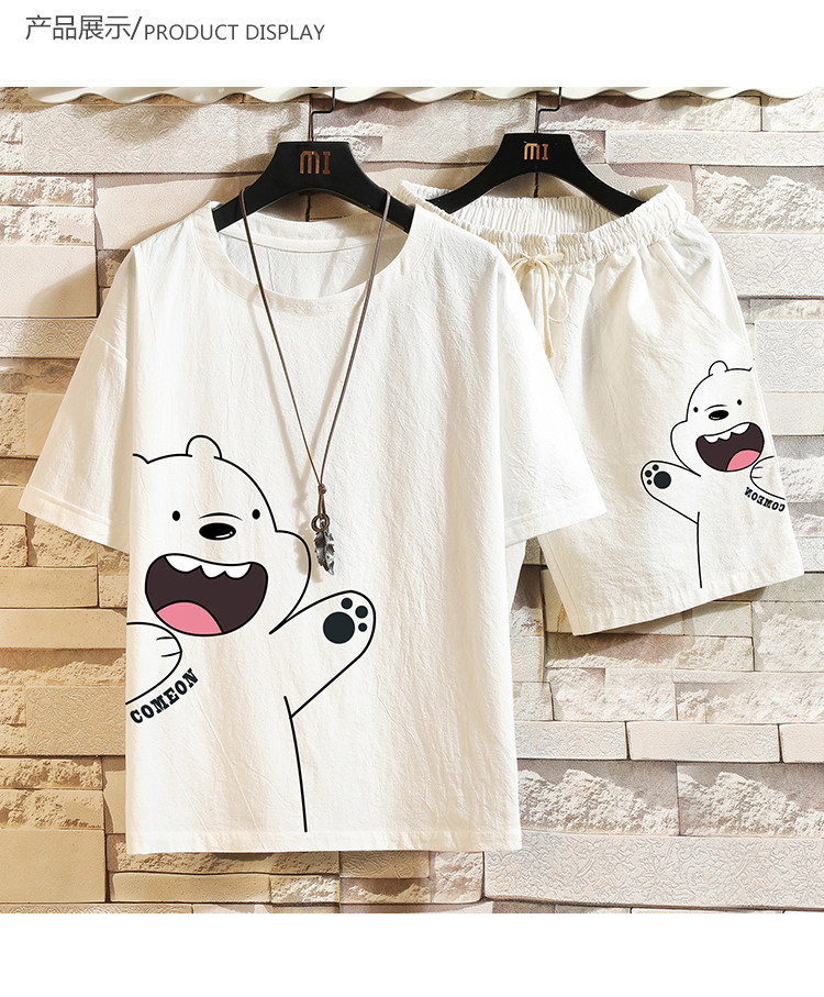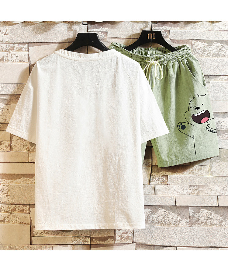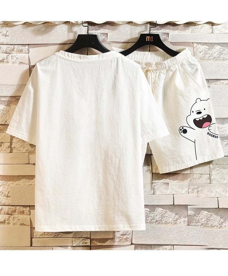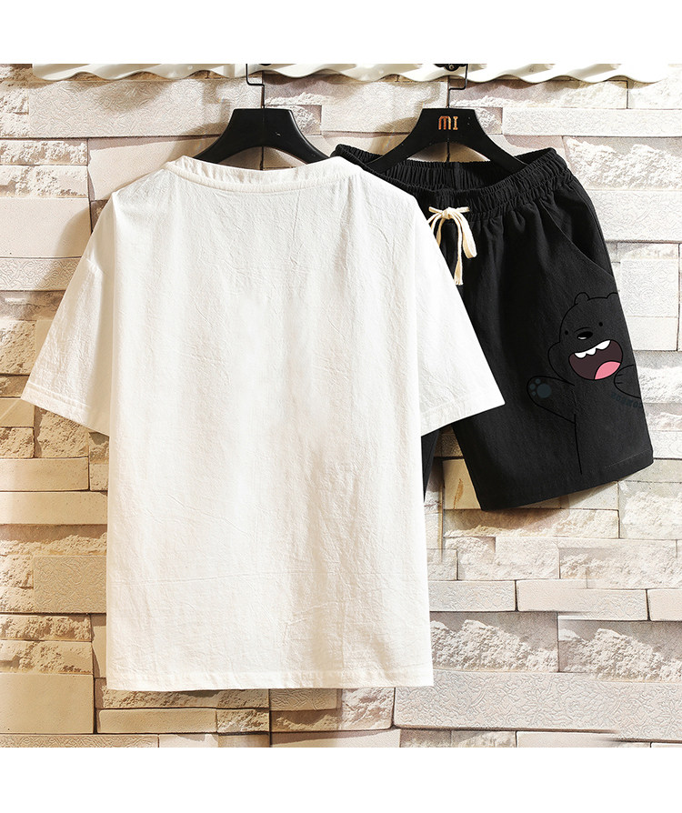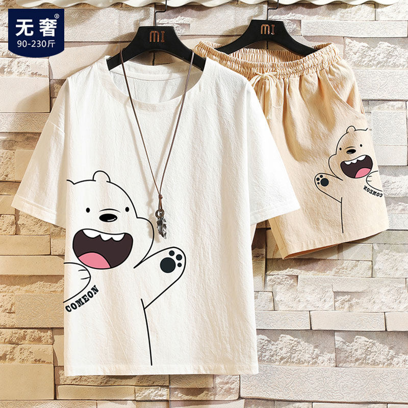 Мужская летняя футболка, нарукавники, комплект, короткий рукав, большой размер, из хлопка и льна