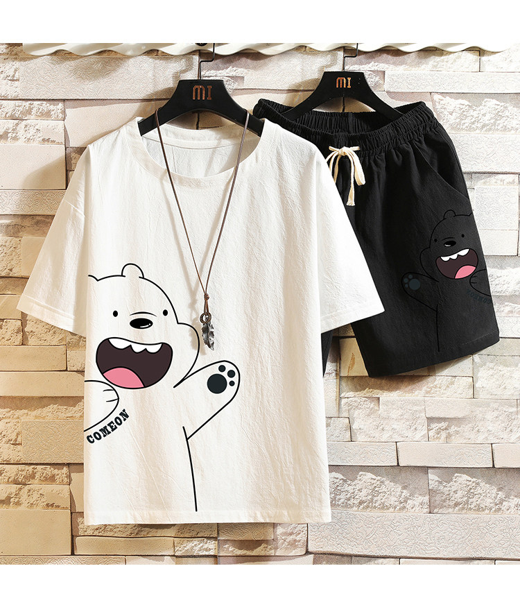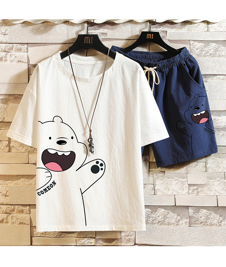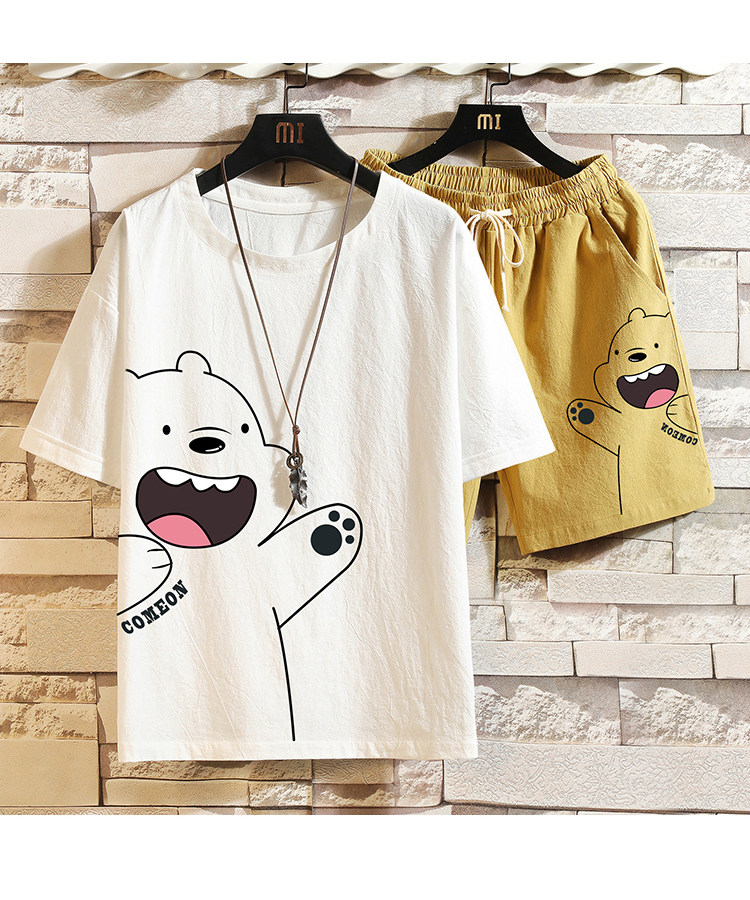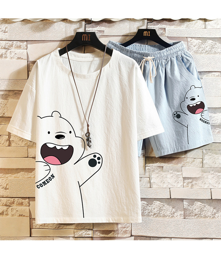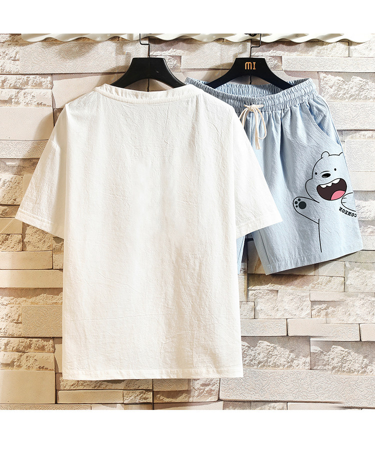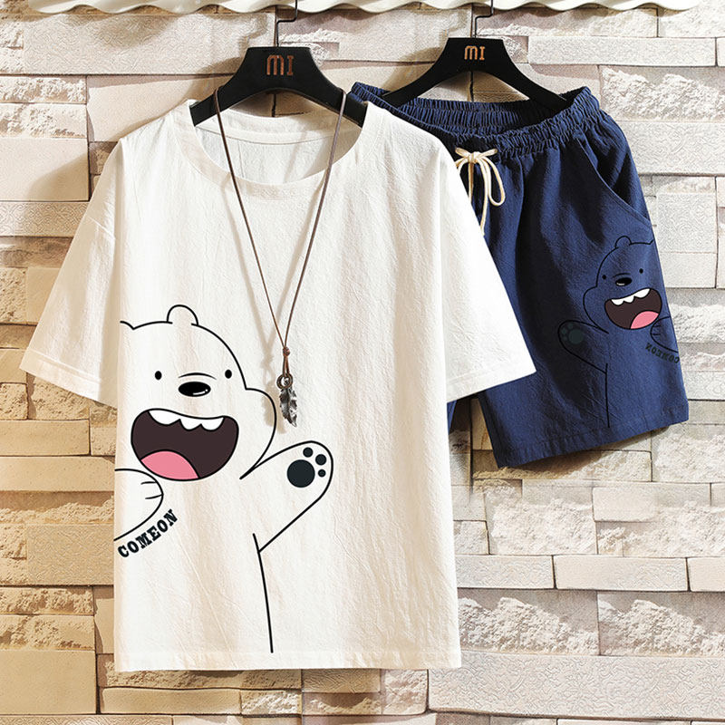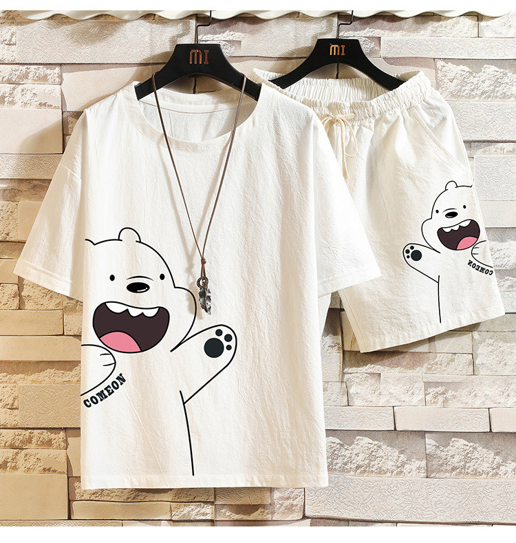 Мужская летняя футболка, нарукавники, комплект, короткий рукав, большой размер, из хлопка и льна