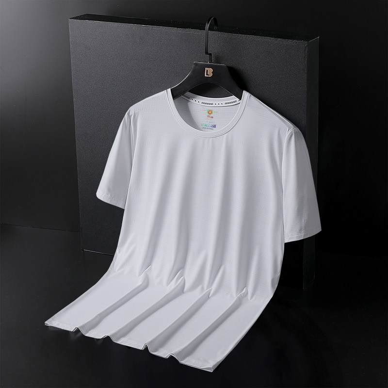 Летняя шелковая шелковистая быстросохнущая ультратонкая тонкая футболка с коротким рукавом с круглым воротником, короткий рукав, свободный крой, большой размер