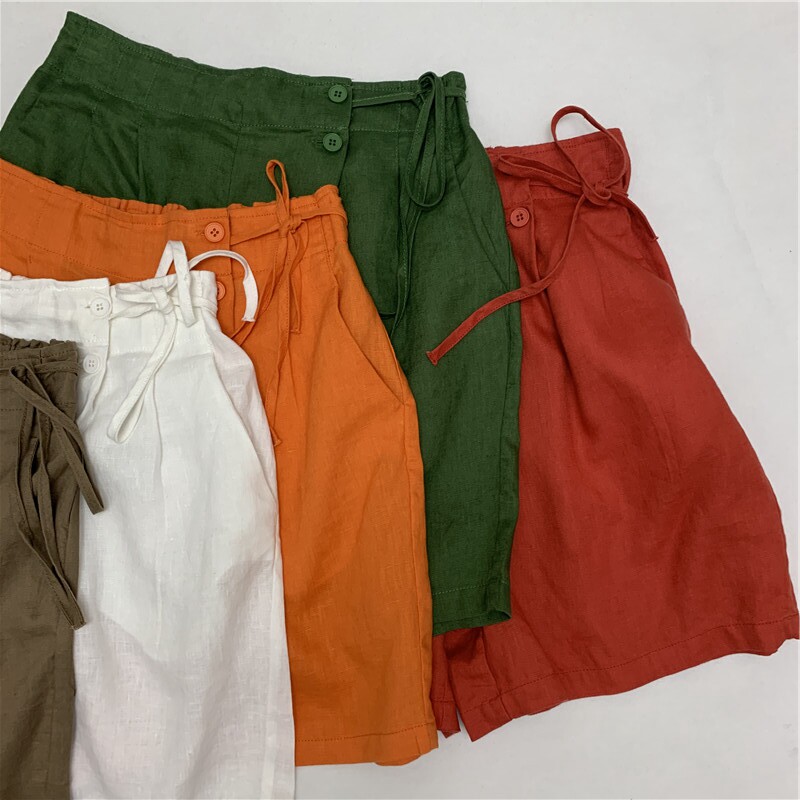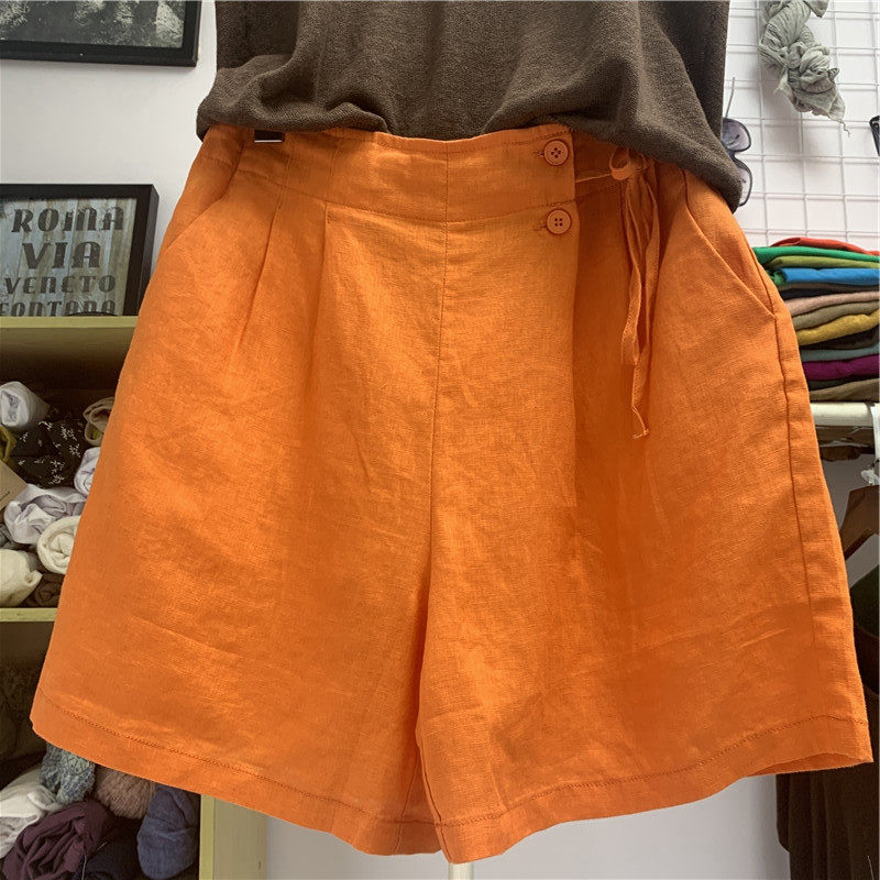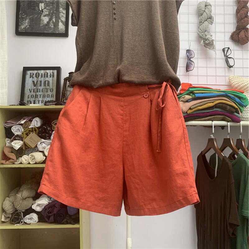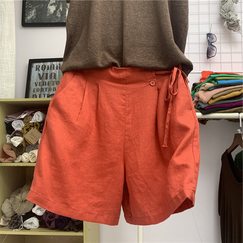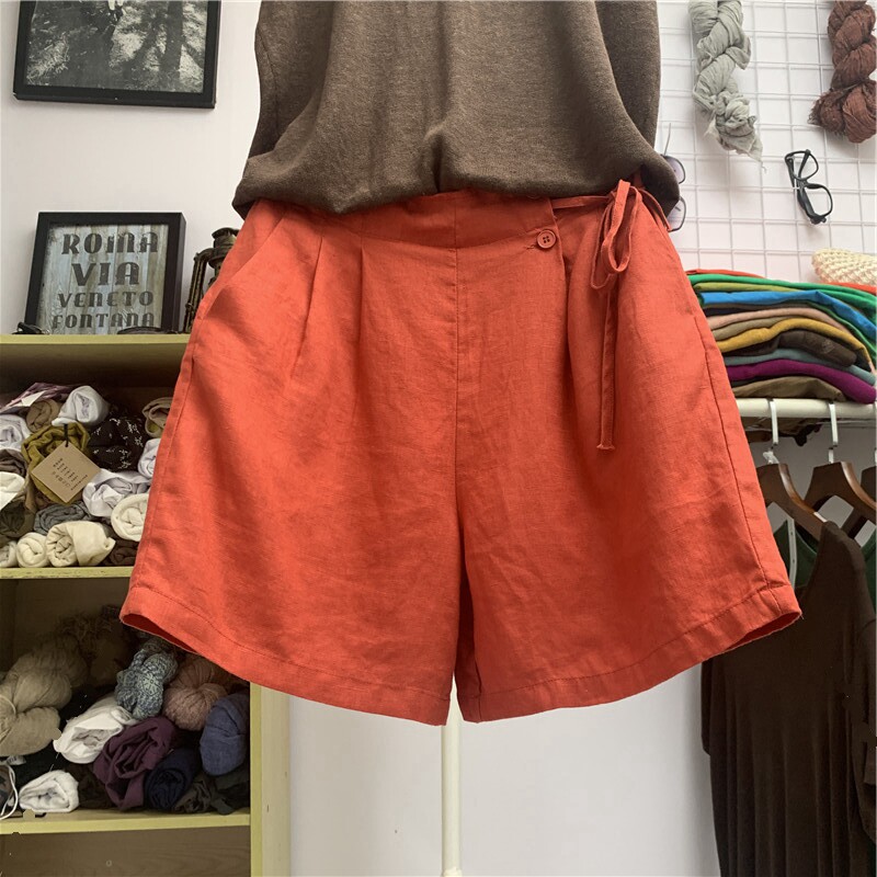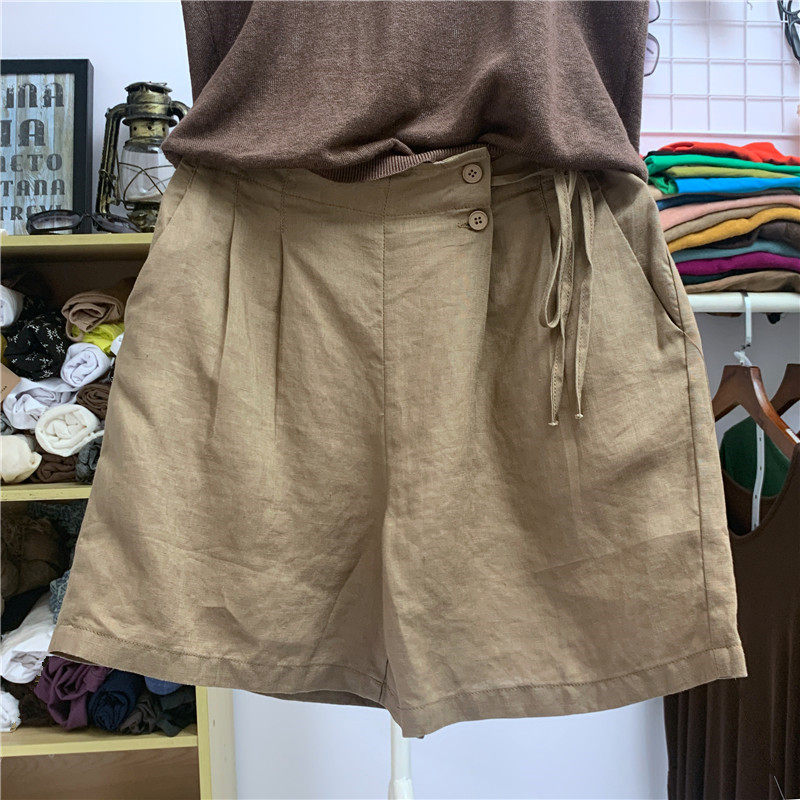 Шорты, тонкие штаны для отдыха, свободный крой, размер, из хлопка и льна