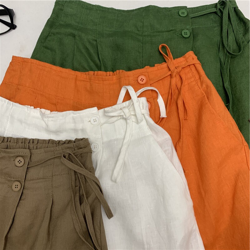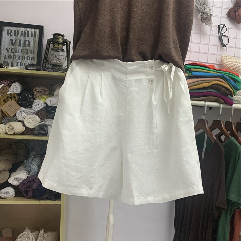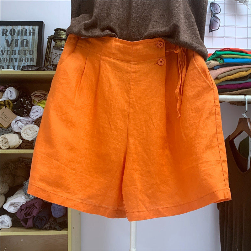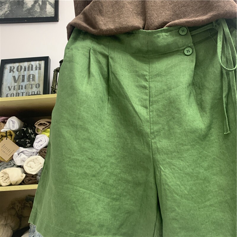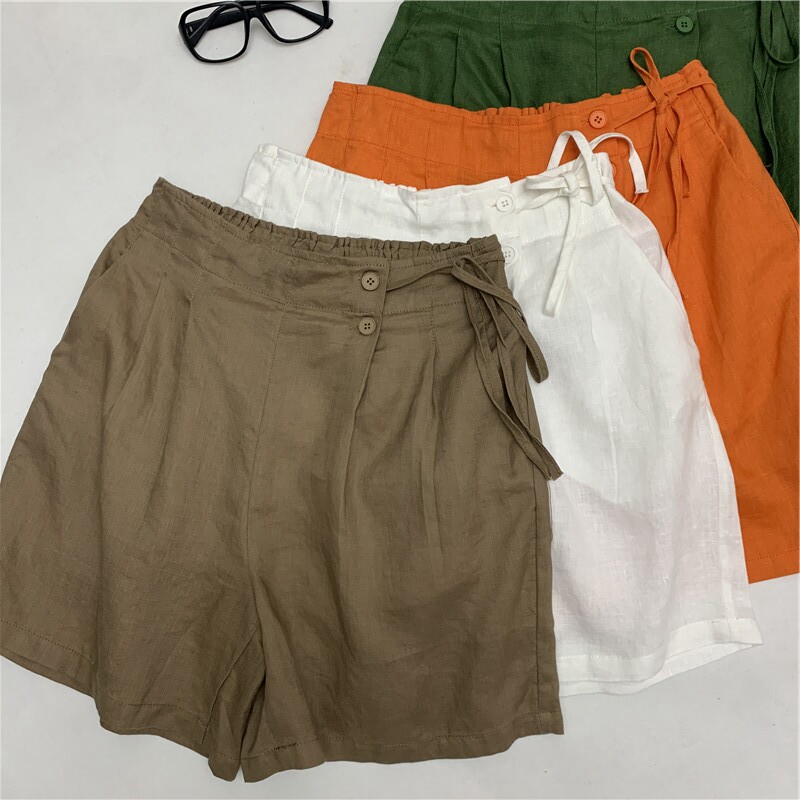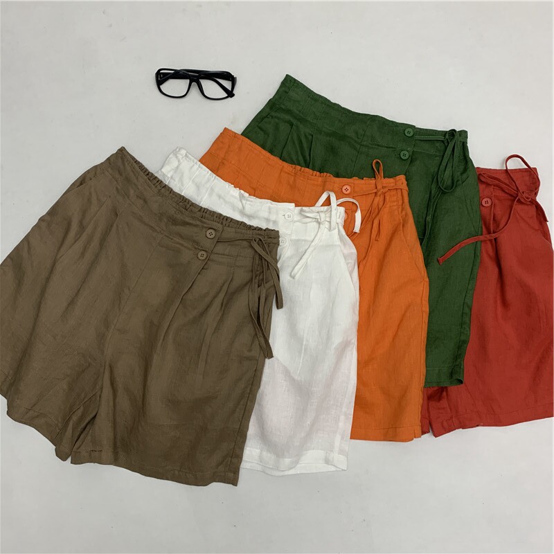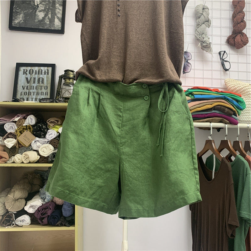 Шорты, тонкие штаны для отдыха, свободный крой, размер, из хлопка и льна