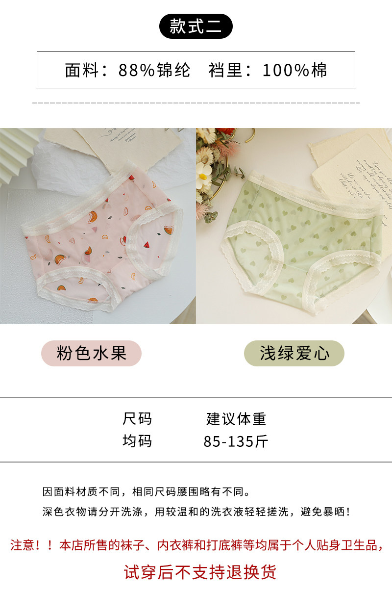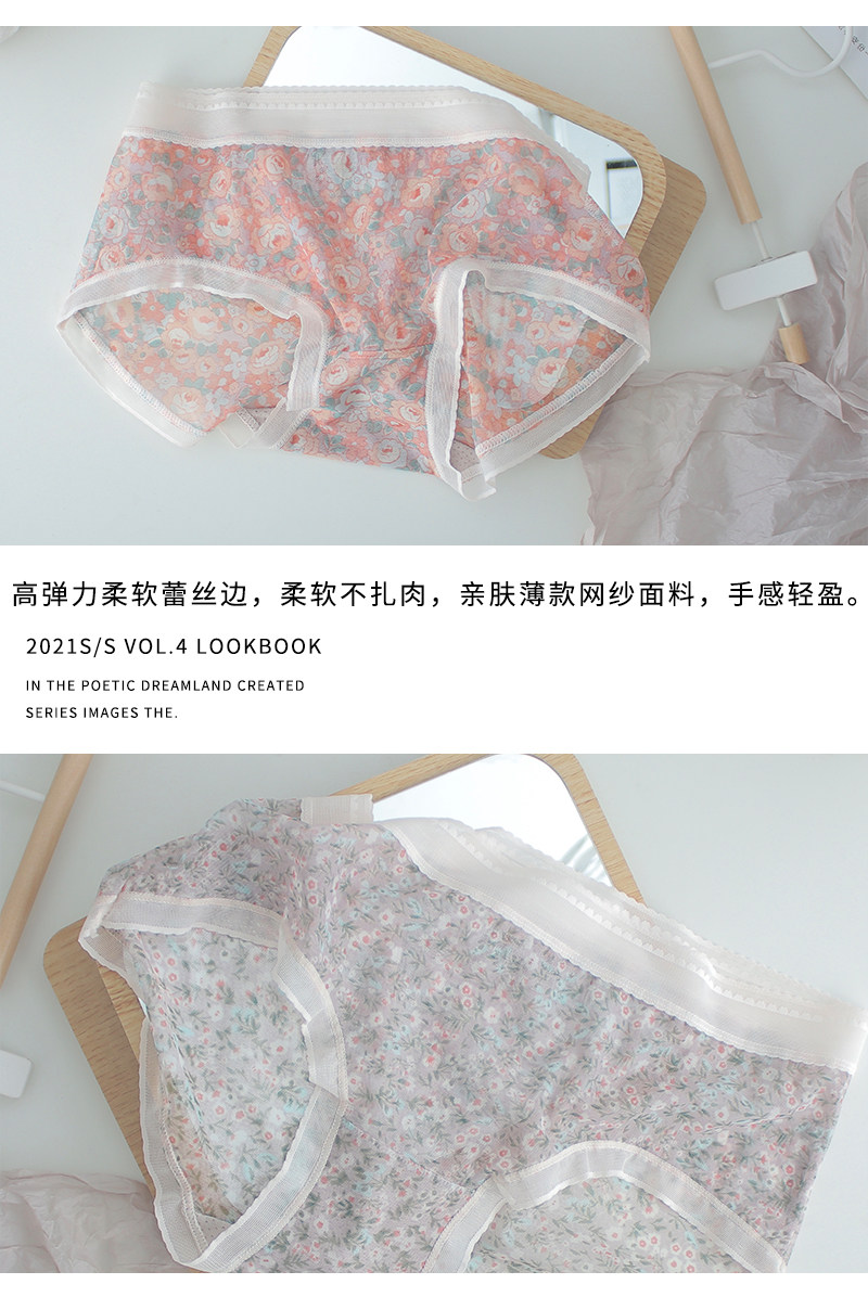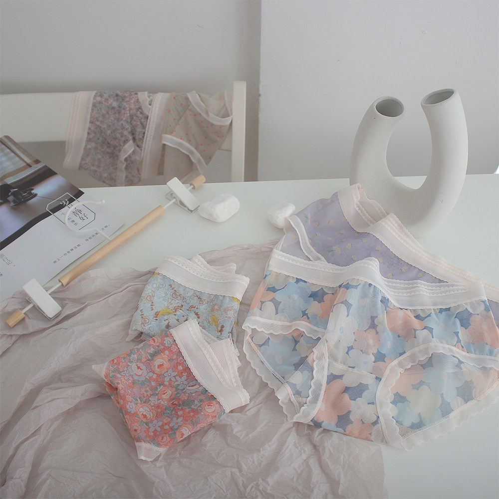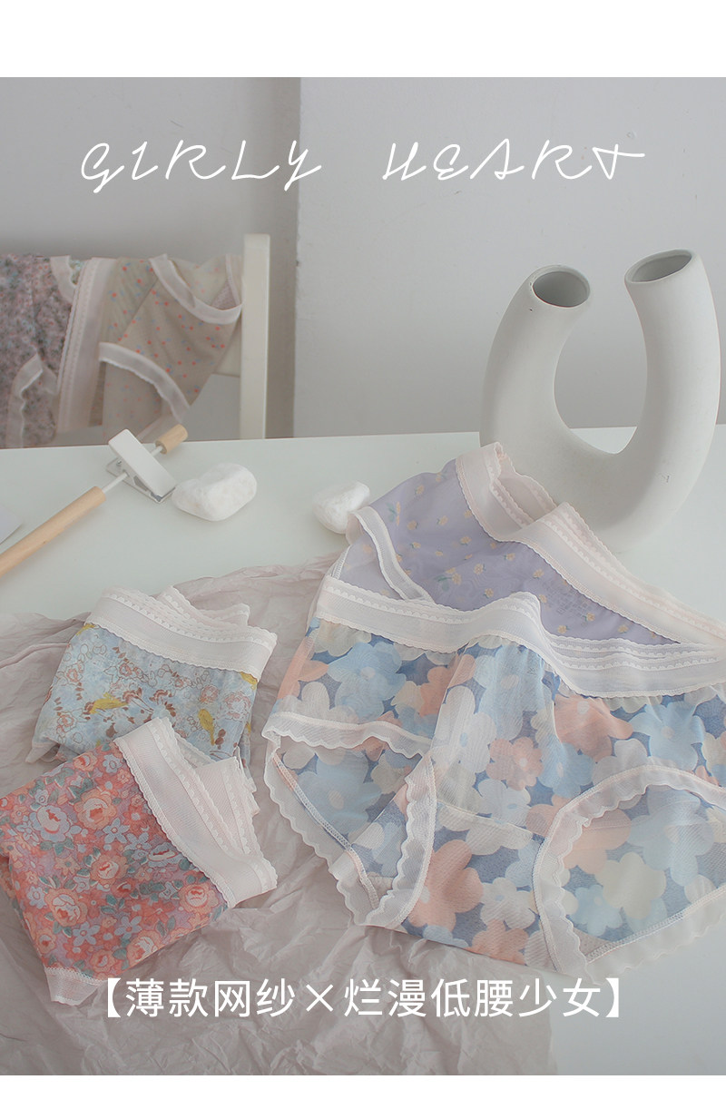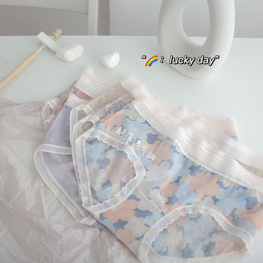 Нижнее белье, дышащие летние тонкие хлопковые штаны, кружевные трусы, средняя посадка