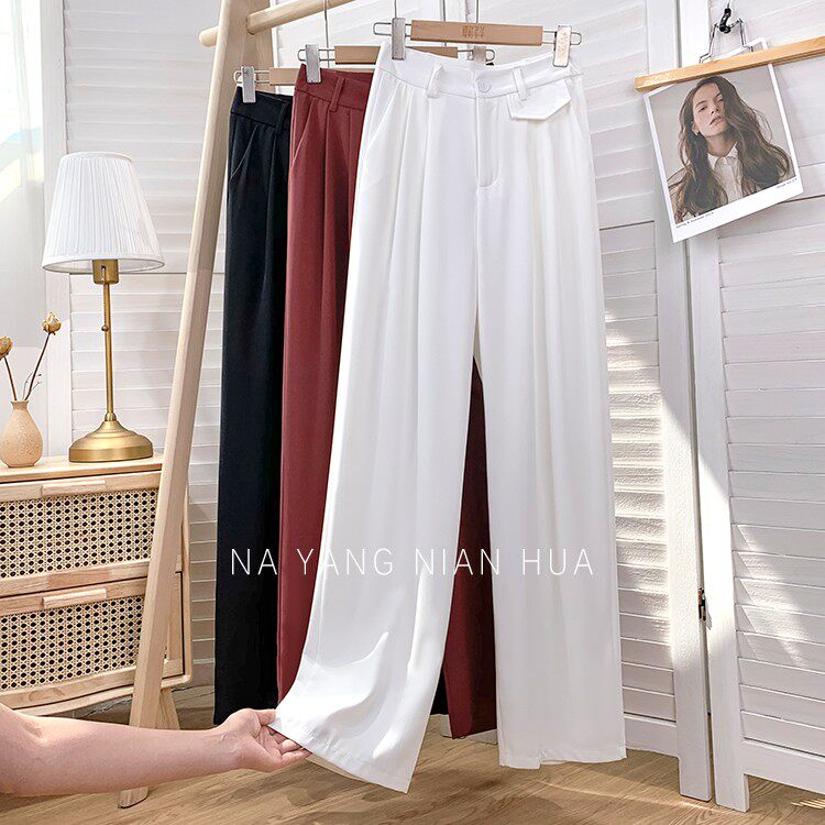 Приталенный шелковый костюм, шифоновые штаны, высокая талия, свободный прямой крой
