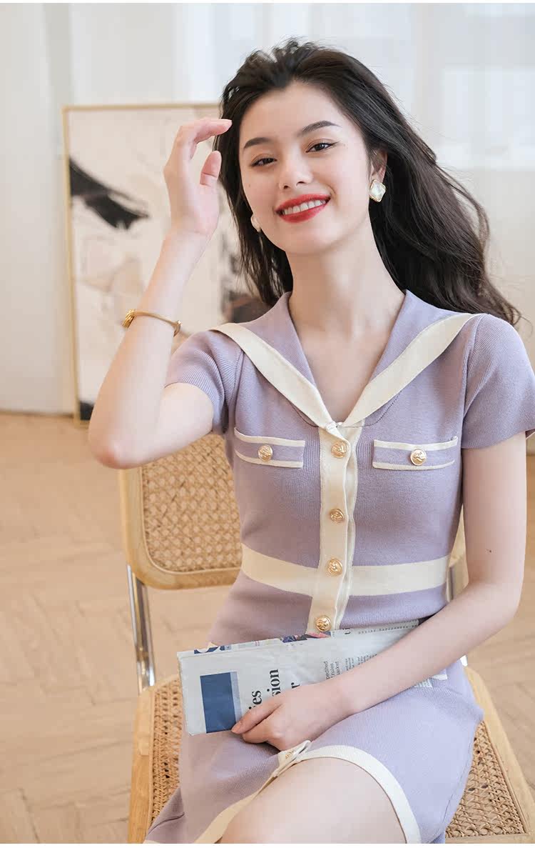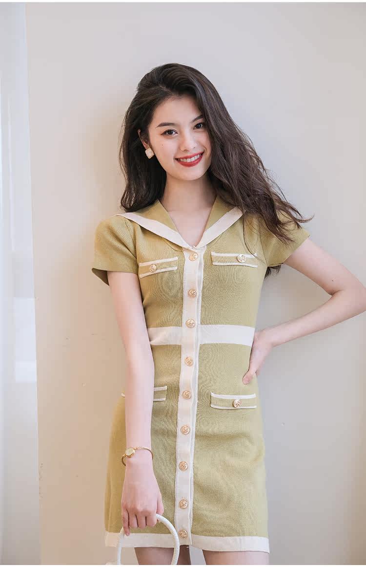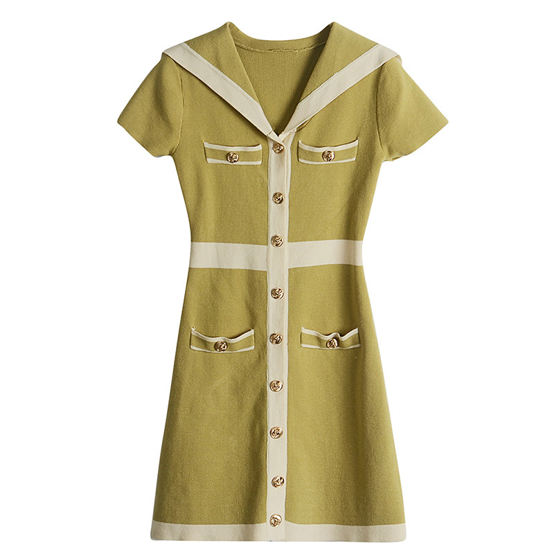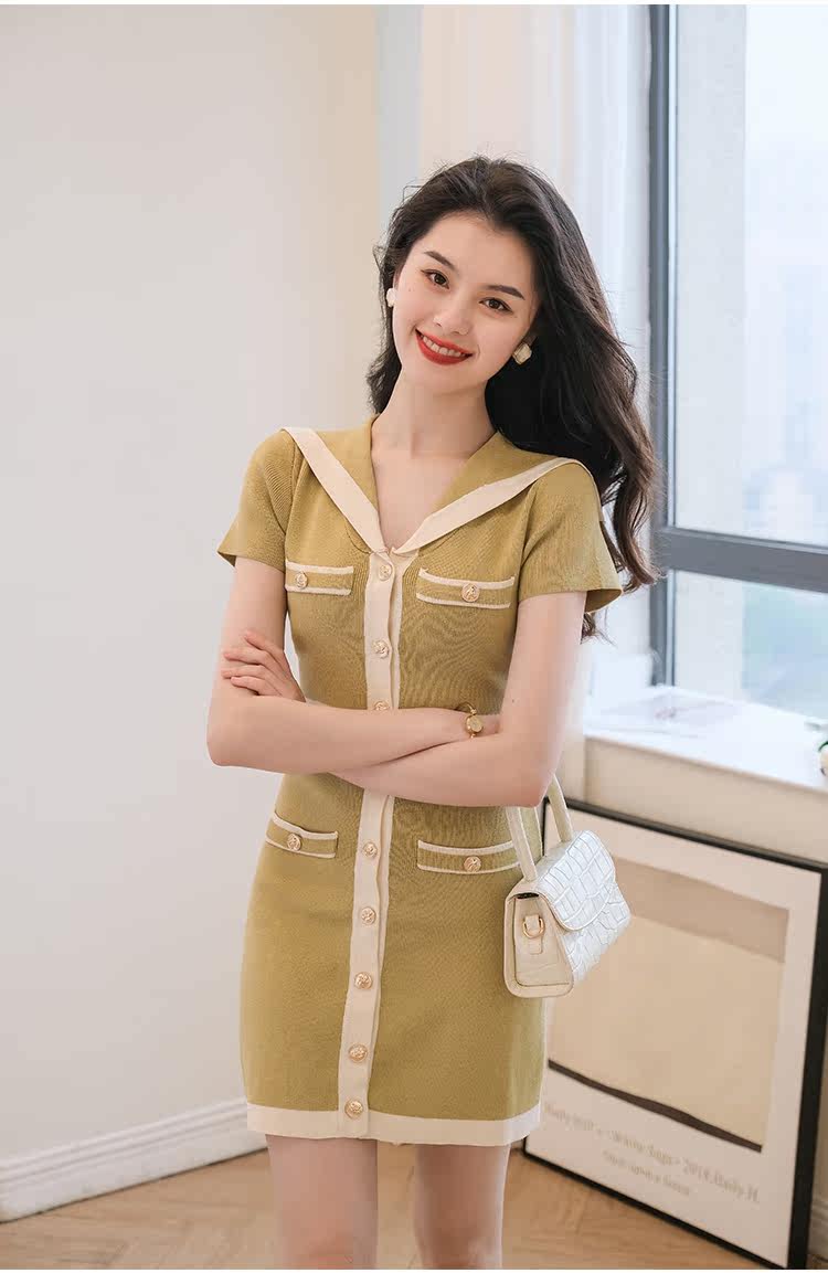 Шелковое военно-морское платье, летняя ретро короткая дизайнерская юбка, городской стиль, тренд сезона