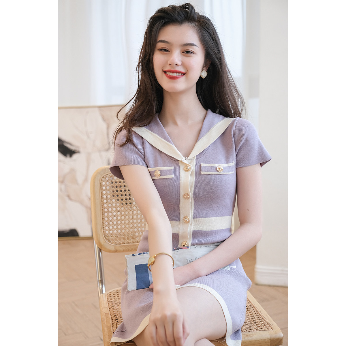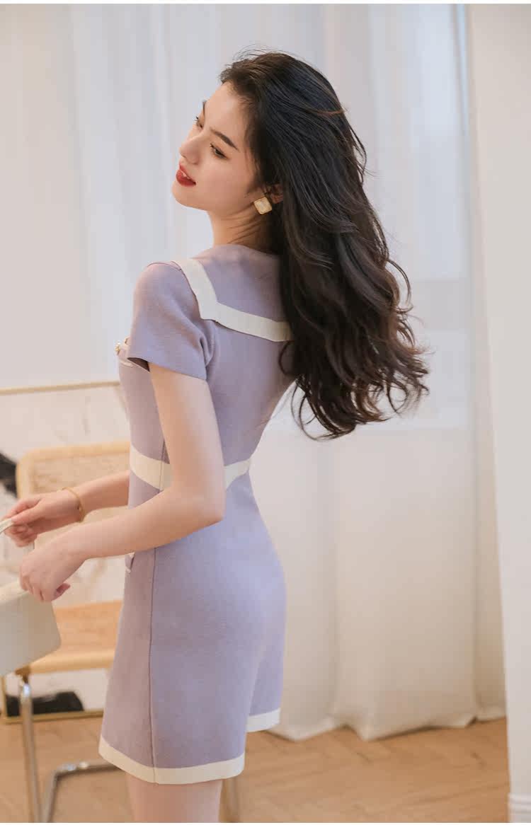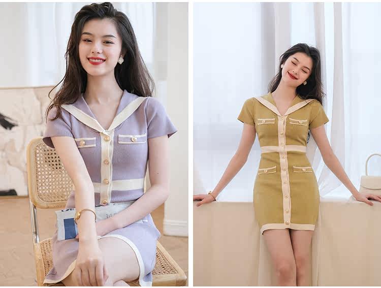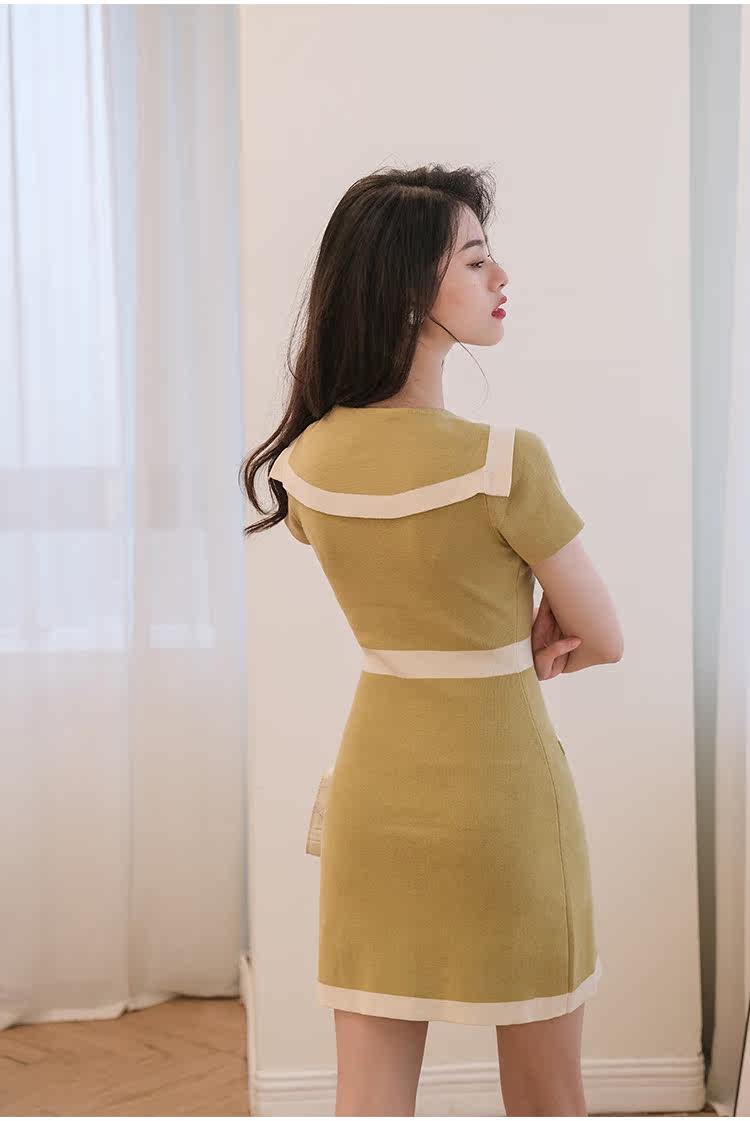 Шелковое военно-морское платье, летняя ретро короткая дизайнерская юбка, городской стиль, тренд сезона