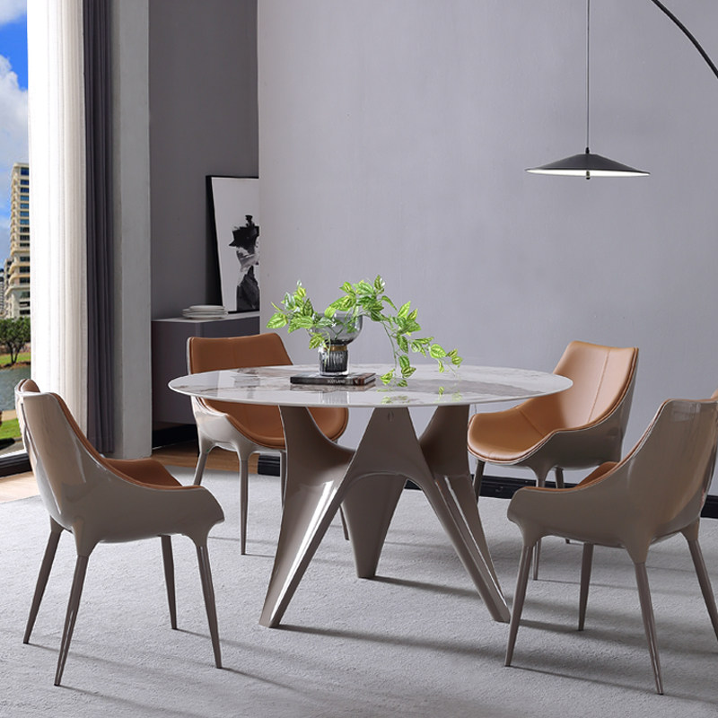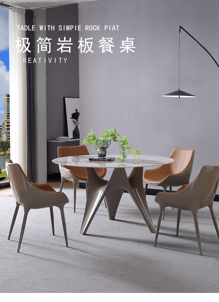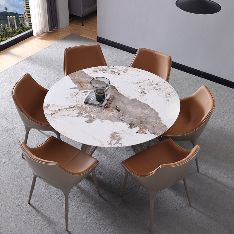 Итальянская каменная тарелка круглый обеденный стол и стул Комбинация современная минималистская небольшая квартира с поворотным круглым столом для обеденного стола Домохозяйство Light Luxury Table