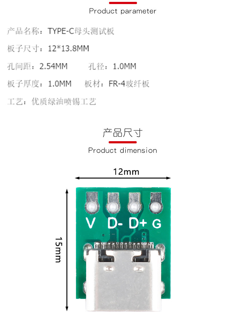 Тестовая плата Type-C Test Seat Seat Test Board USB3.1 16P Mother Gead в 2,54 Текущий разъем питания платы питания