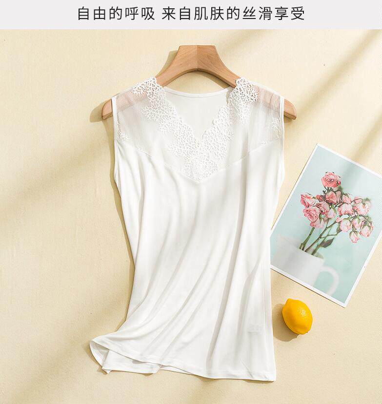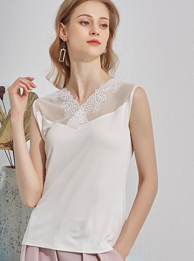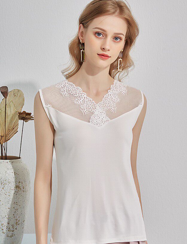 Шелковый белый черный базовый приятный телу летний кружевной топ с чашечками, V-образный вырез