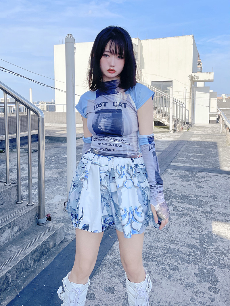 - Top L+белая и синяя гоночная юбка
