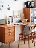 [邮筒书桌 实木书柜一体日式樱桃木写字台抽屉双人办公桌家用]