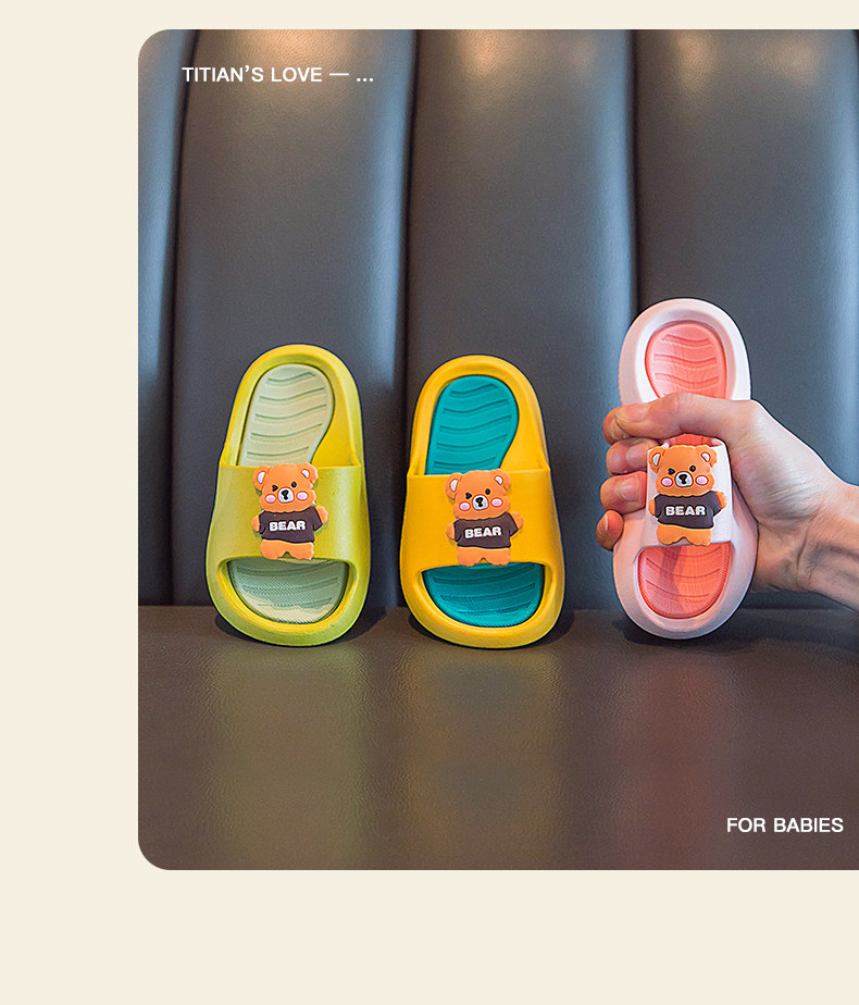 Летние нескользящие мультяшные милые детские тапочки для ванны, мягкая подошва, семейный стиль