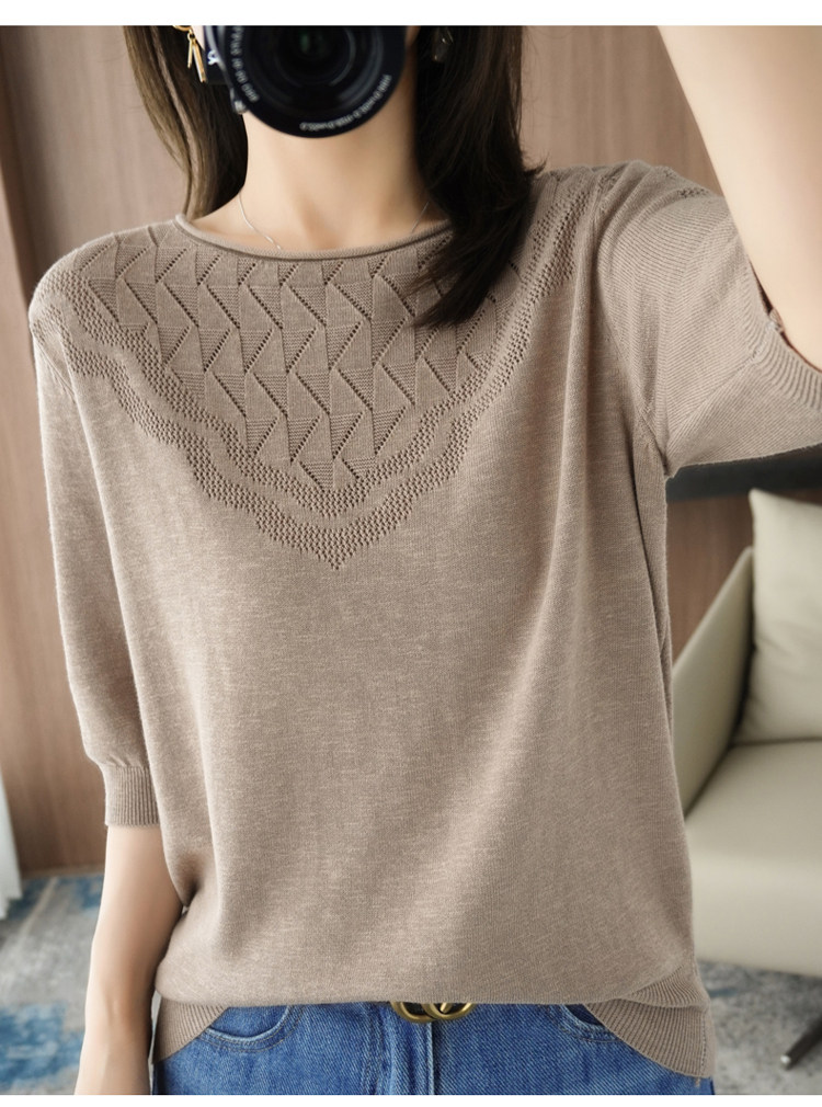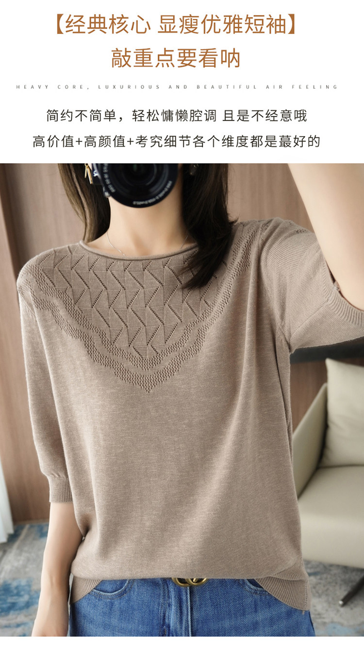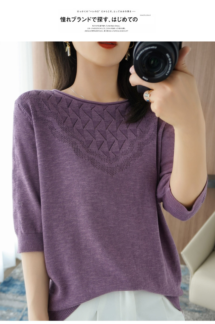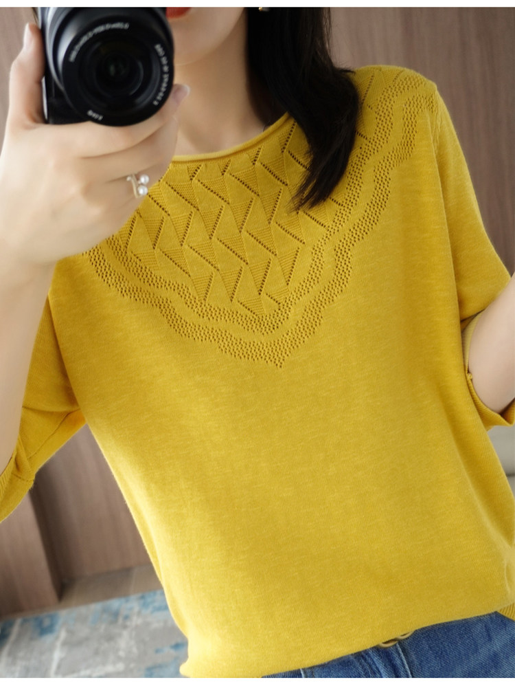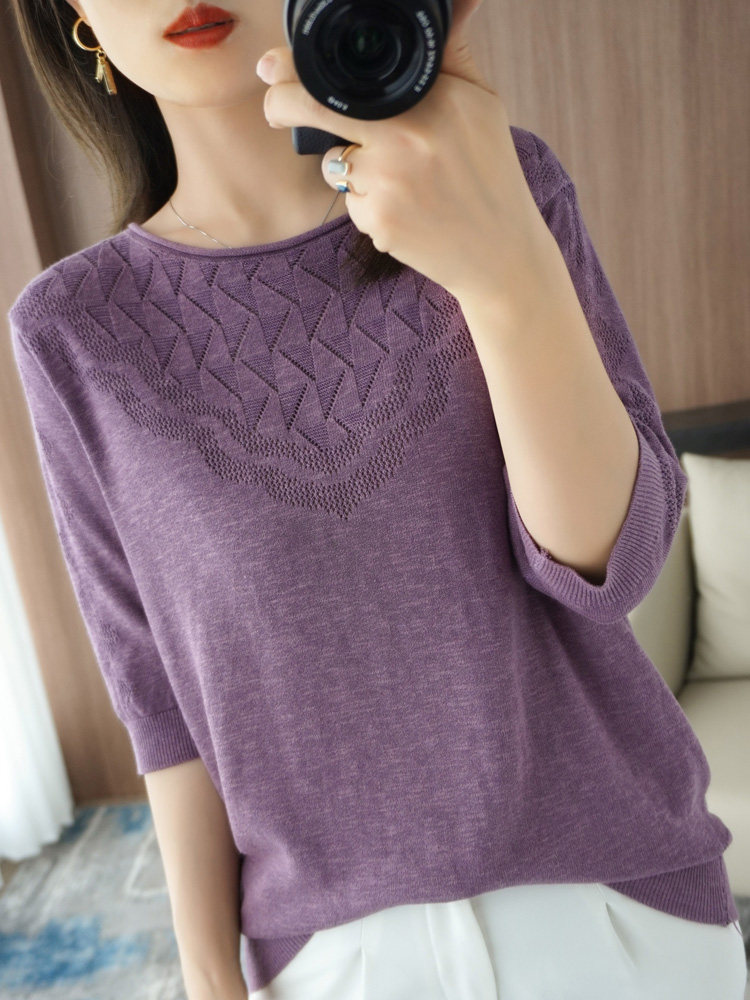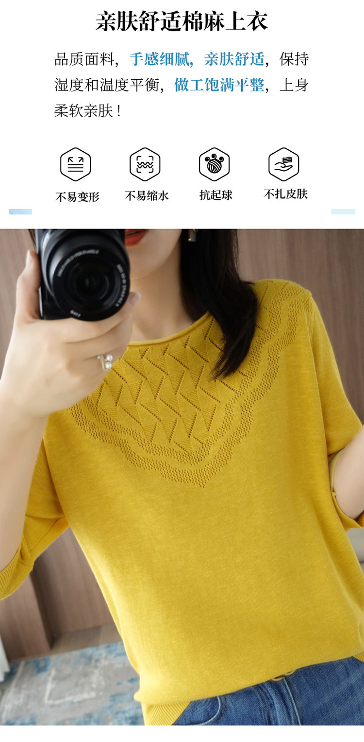 Летний хлопковый трикотажный свитер с круглым воротником, хлопковая футболка, из хлопка и льна, короткий рукав, в корейском стиле, большой размер