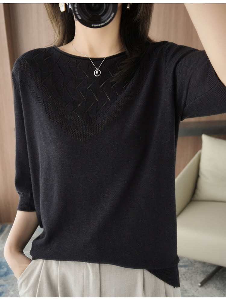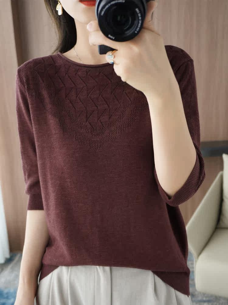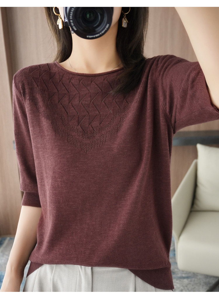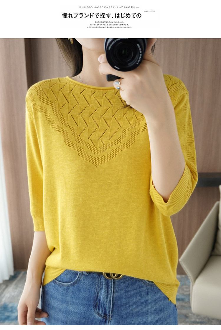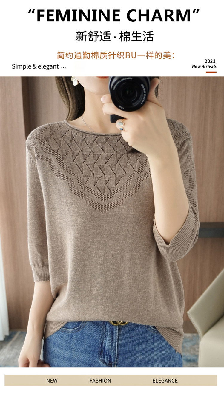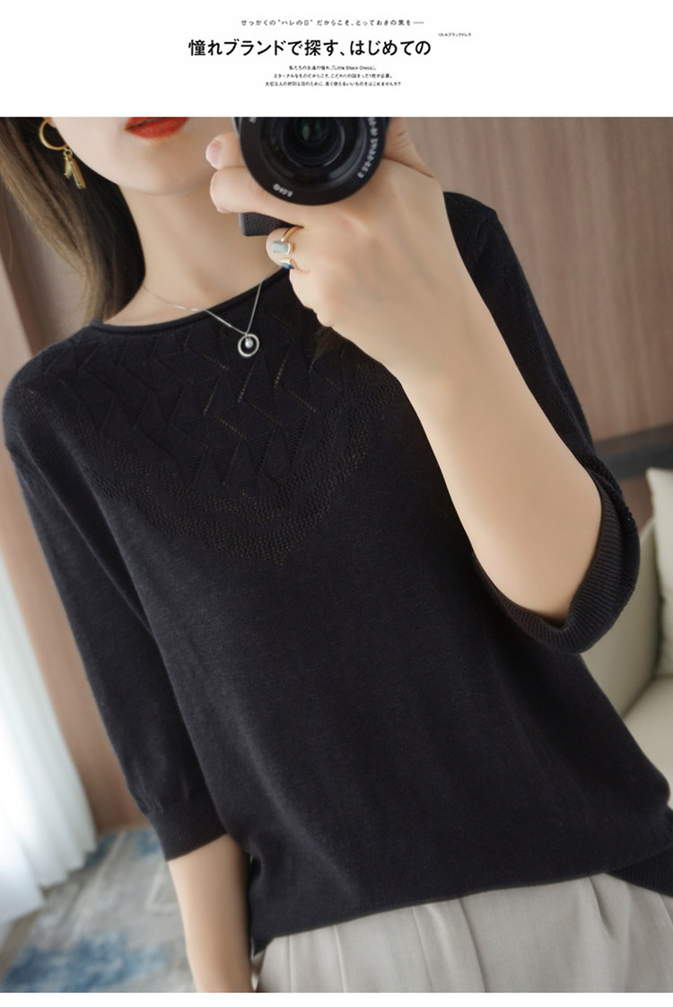 Летний хлопковый трикотажный свитер с круглым воротником, хлопковая футболка, из хлопка и льна, короткий рукав, в корейском стиле, большой размер